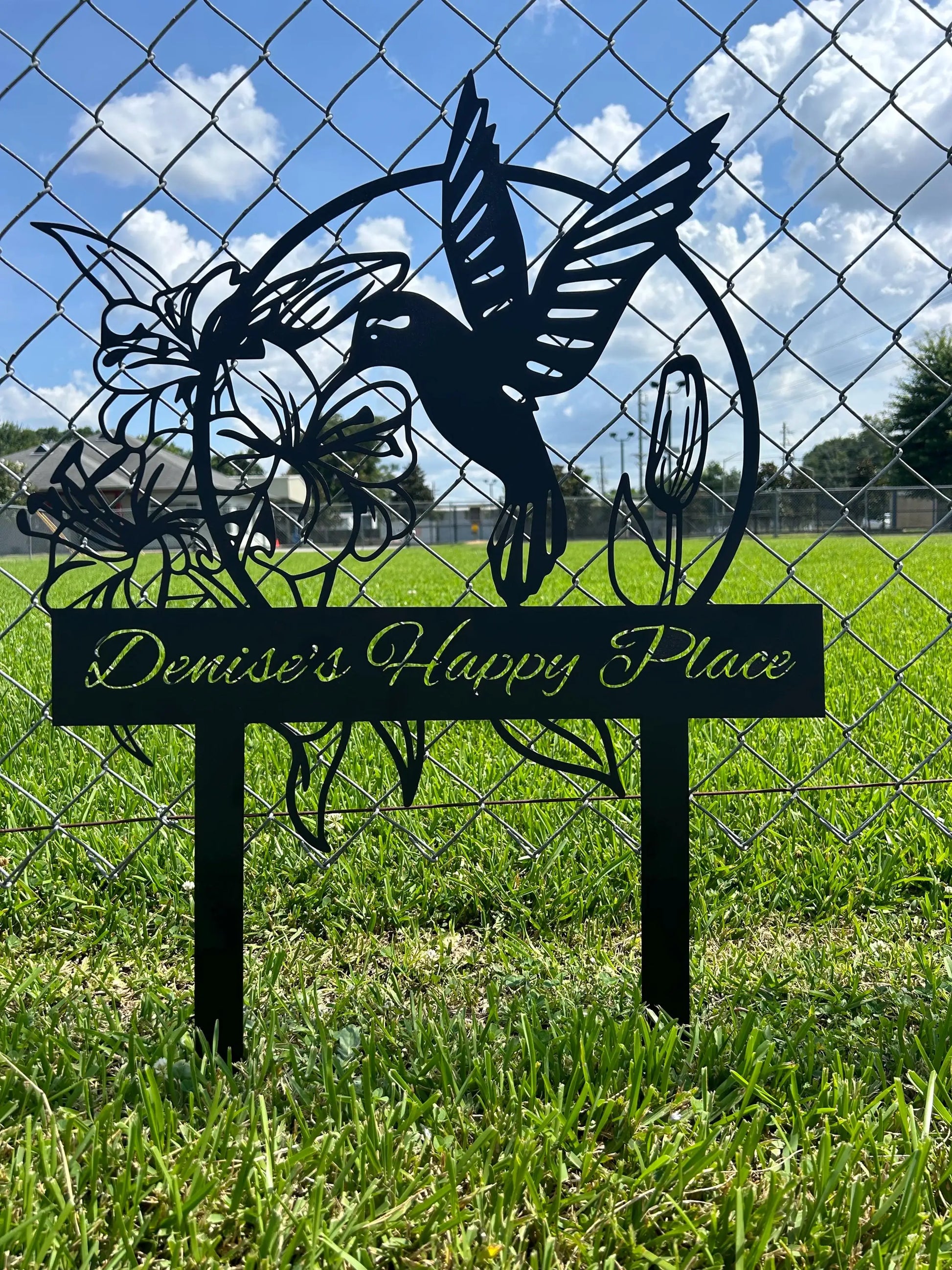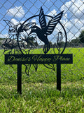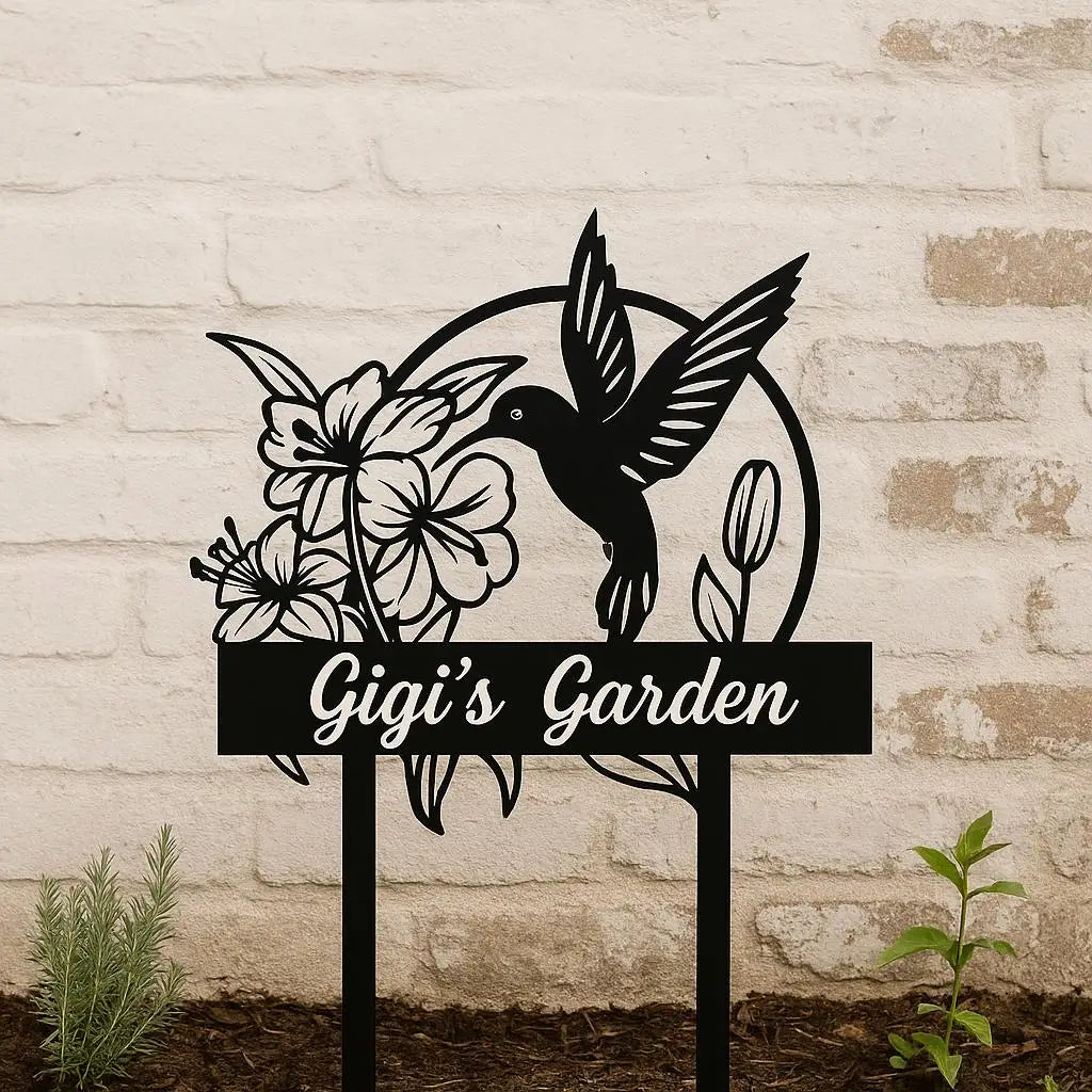 Custom Hummingbird Metal Garden Decor Bird with Stakes Garden Sign Flower Design Personalized Garden Sign Custom Garden Name