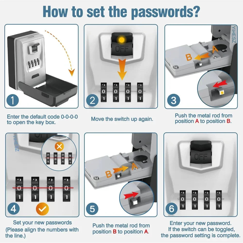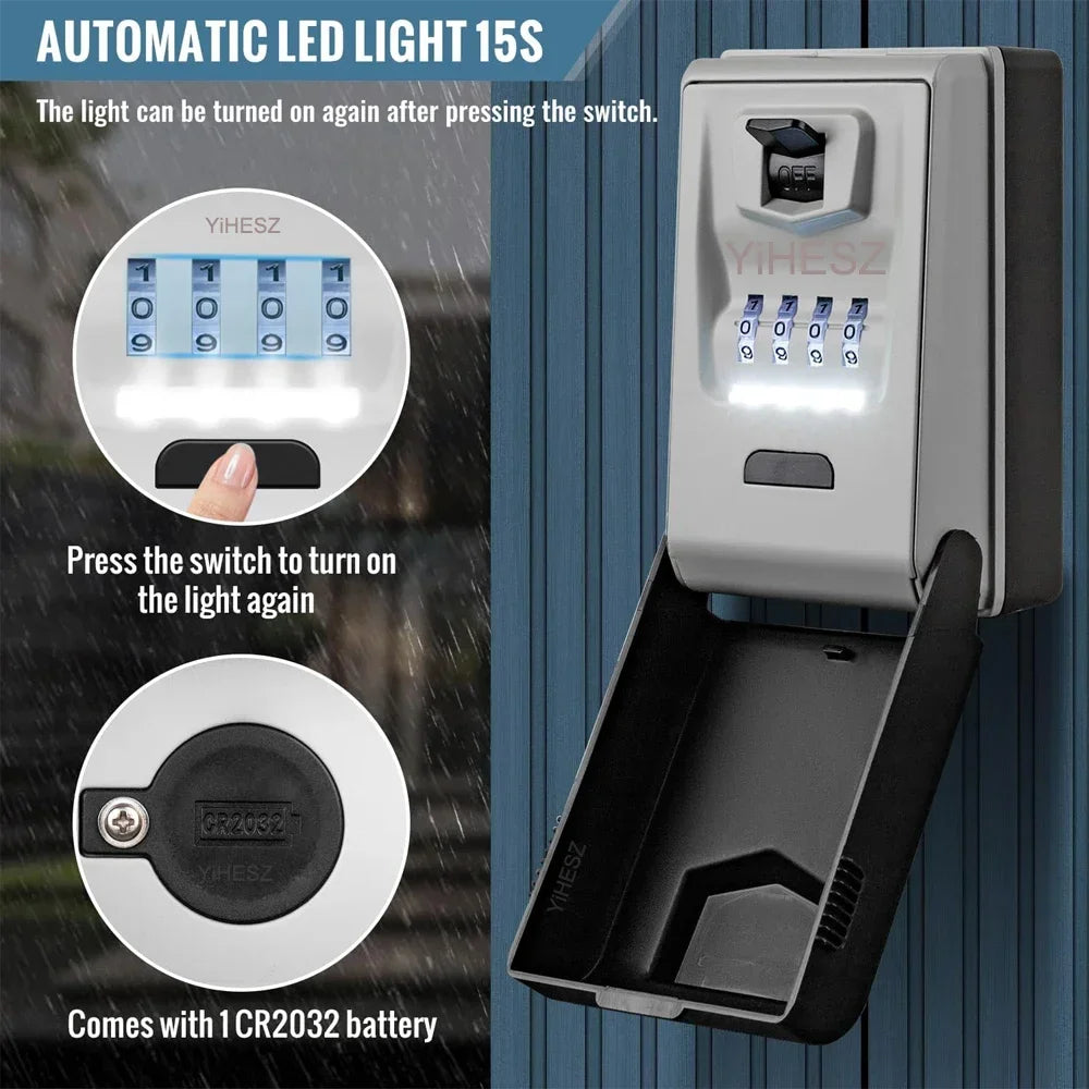 Dialing Wheel Password Key Lock Box Security Key Safe Waterproof Outdoor Mini Safes Small Lock Box Built-in LED Light For Night