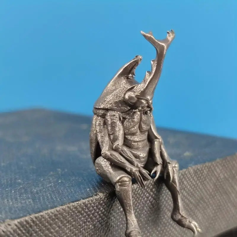Dual Horned Beetle Statue Antique Brass Realistic Beetle Sculpture Home Decoration Ornaments Copper Animal Miniature Figurine