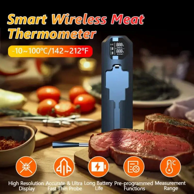 Dual-Temperature Bluetooth Smart Kitchen Thermometer Ceramic Probe IP67 Waterproof Digital Display Food Assistant BBQ Oven Meat