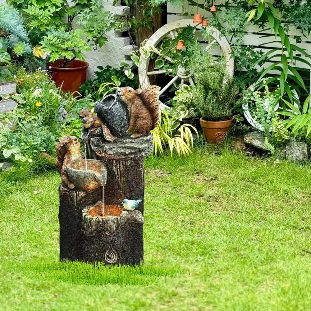 Duck Solar Power Squirrel Resin Fountain Garden Design With Led Light Garden oration Squirrel Fountain Waterfall StatueDec