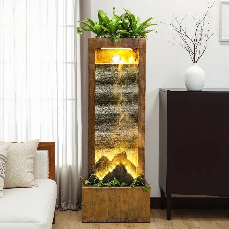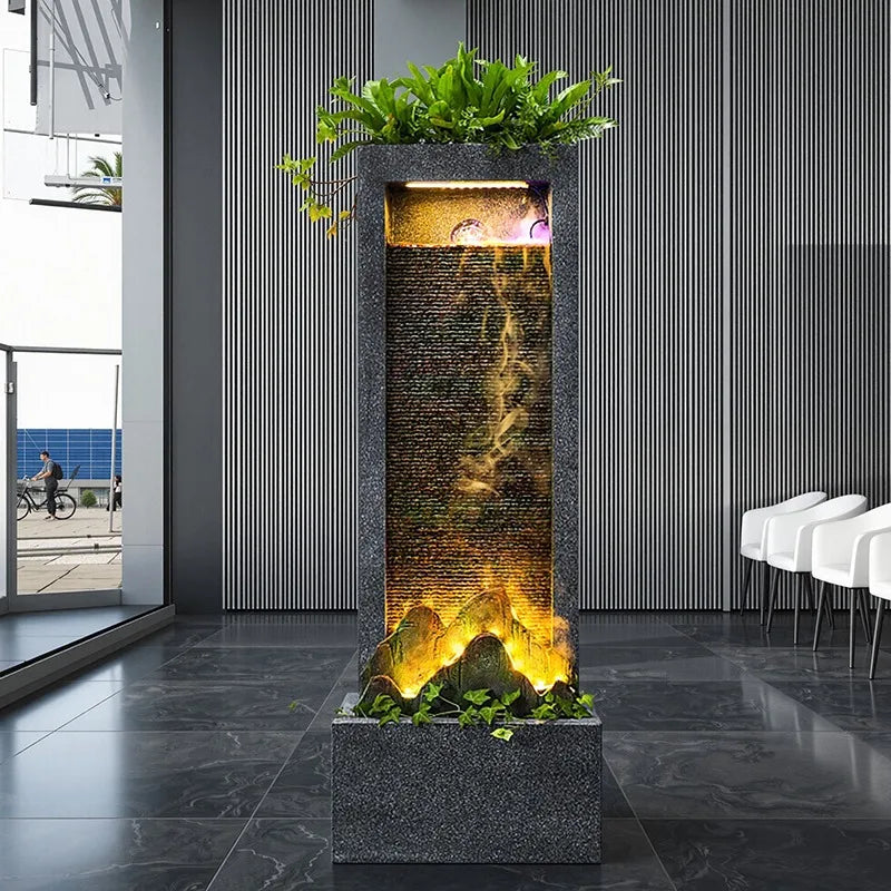 Feng Shui Resin Water Fountain Cascading Design With Wealth Attraction Concept For Home Office Zen Decor