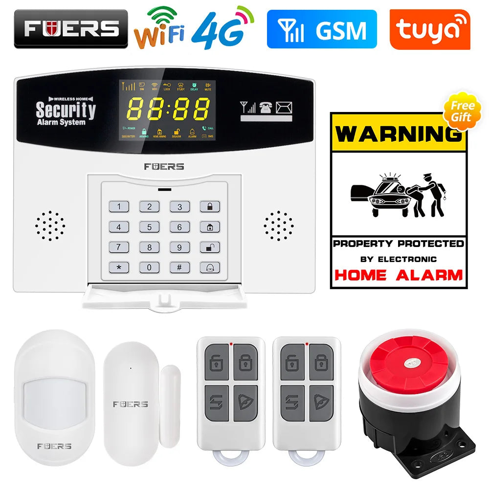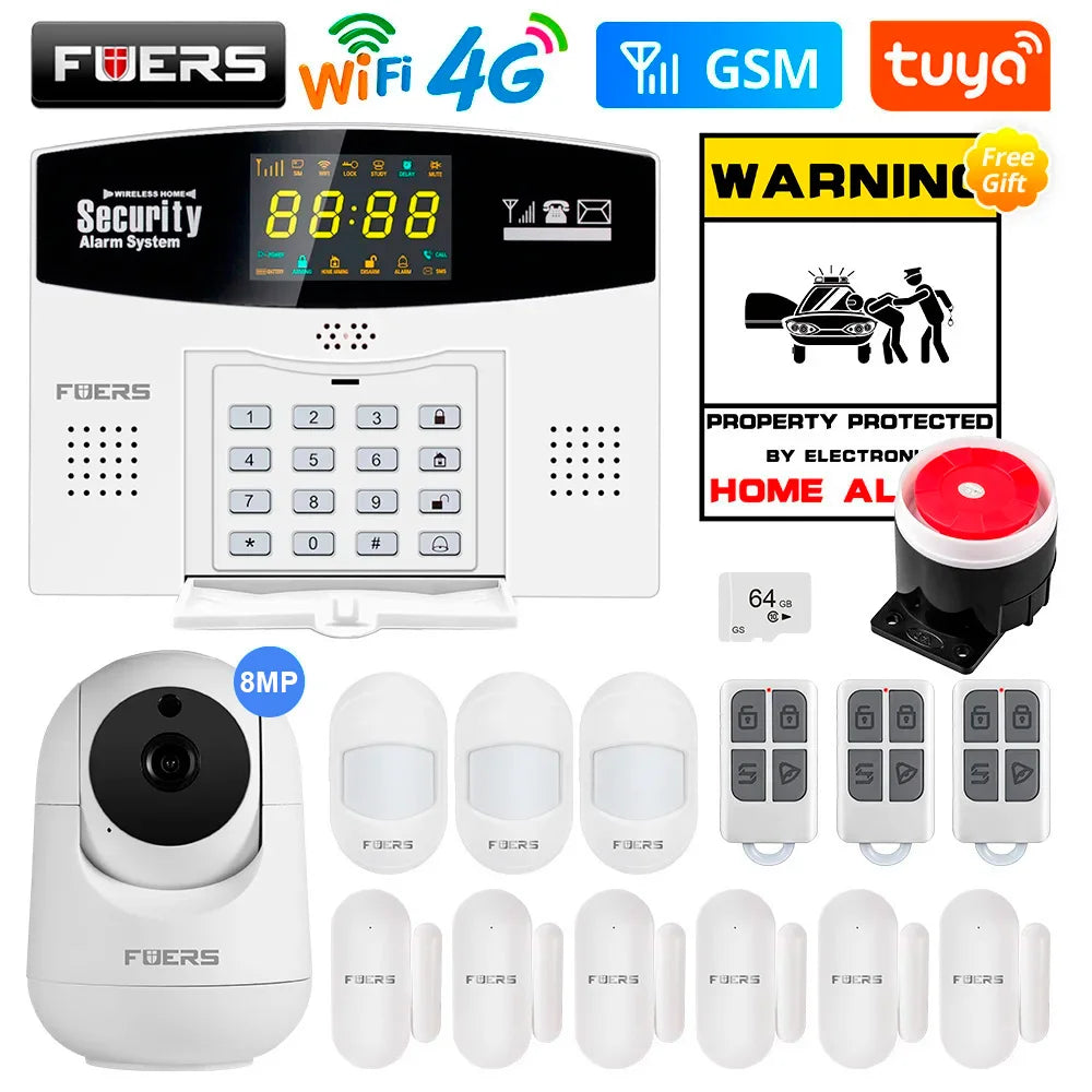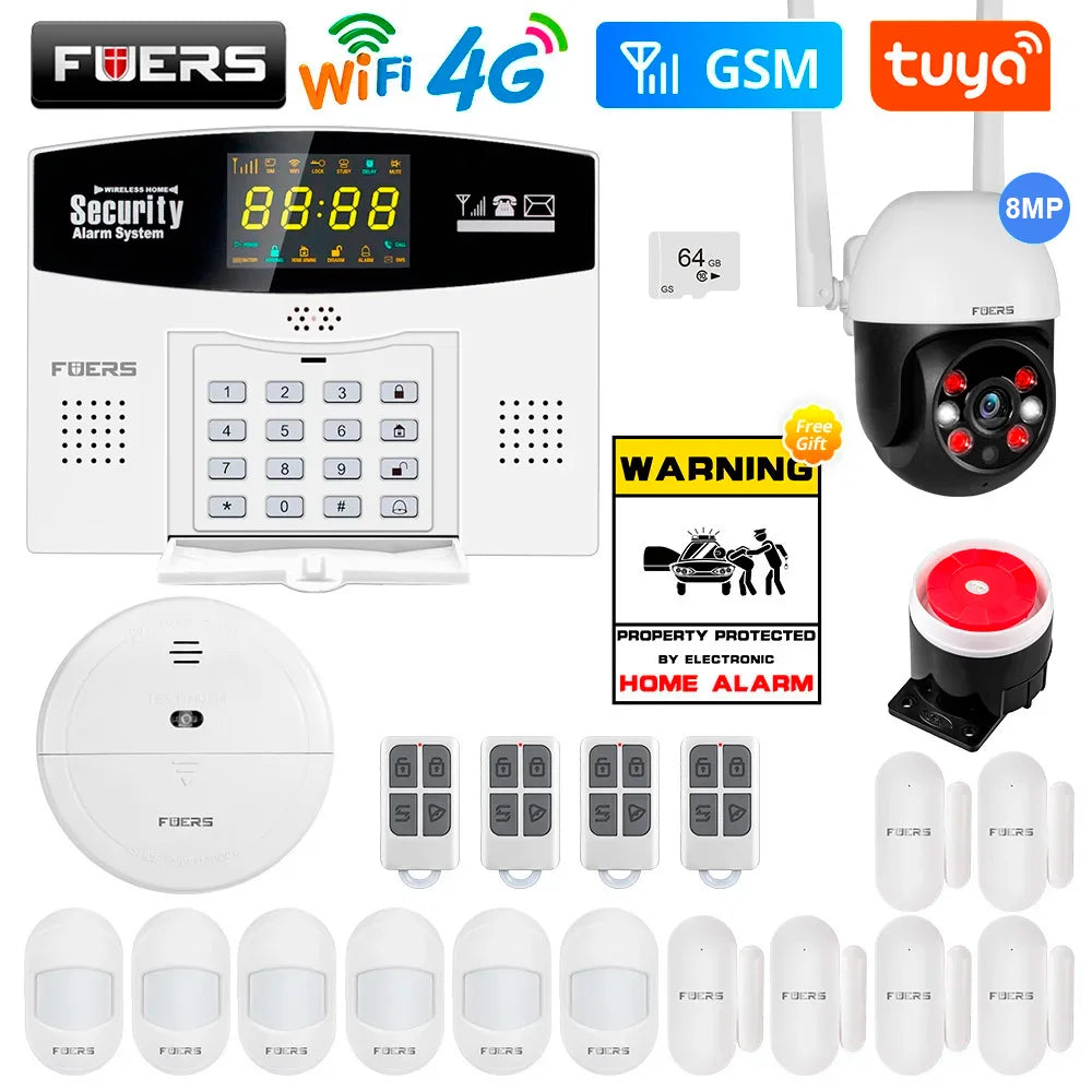 Fuers W214 4G WIFI Tuya Smart Alarm System Wireless Burglar GSM Smart Home Security Alarm Control LCD Display IP Camera