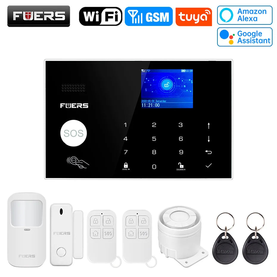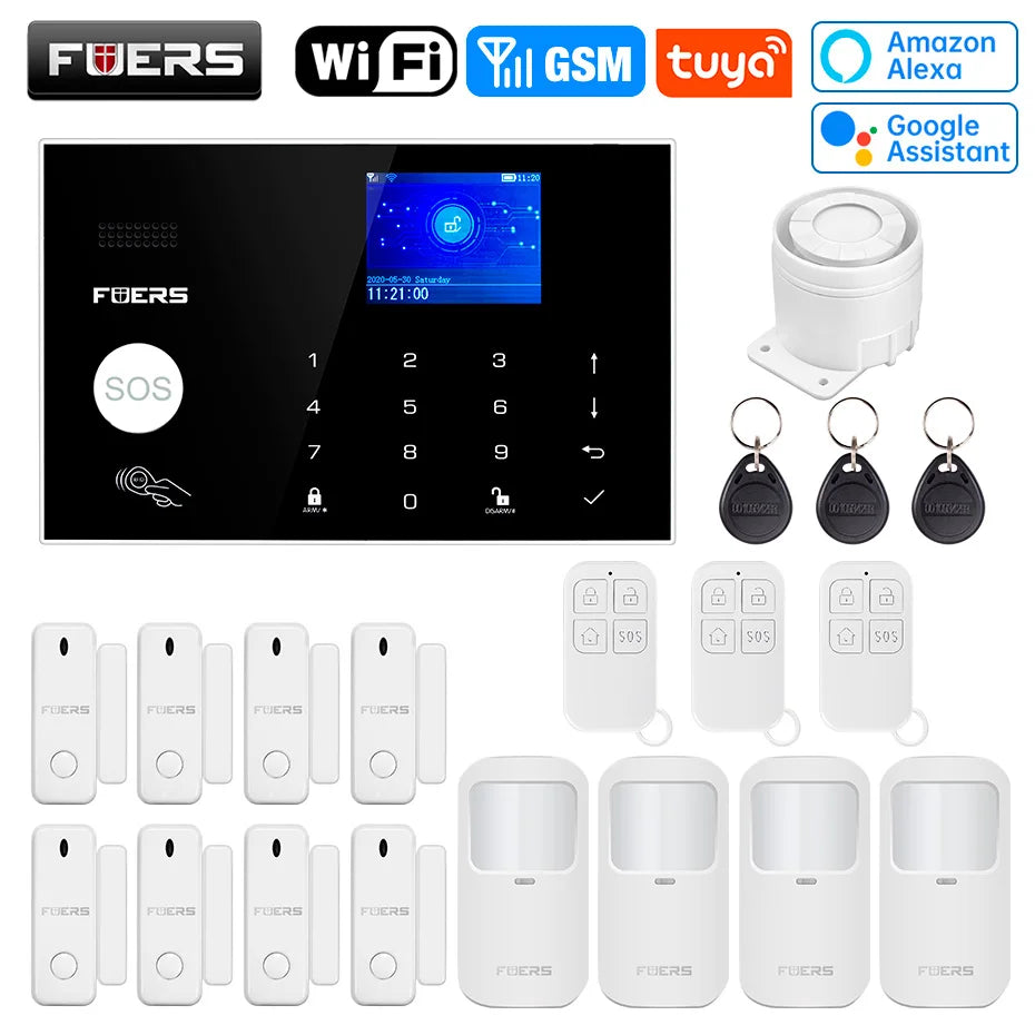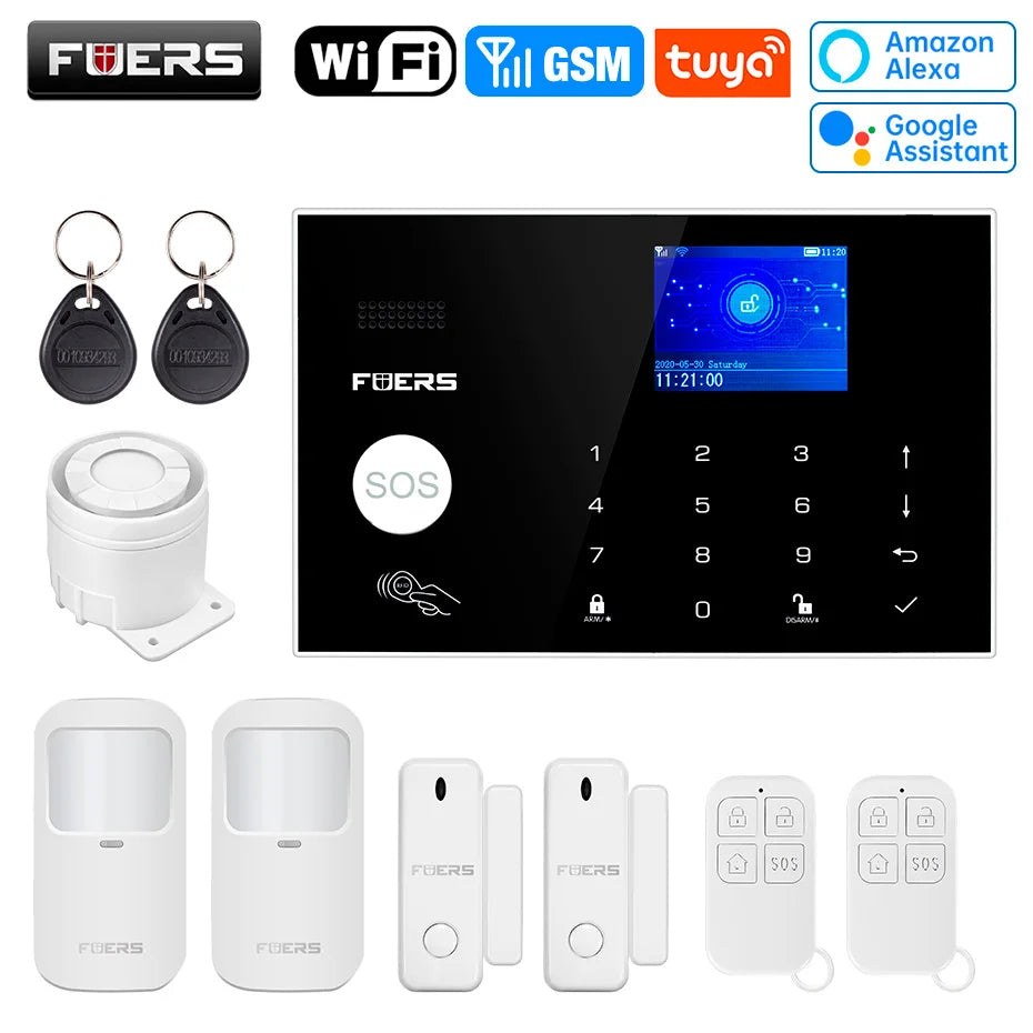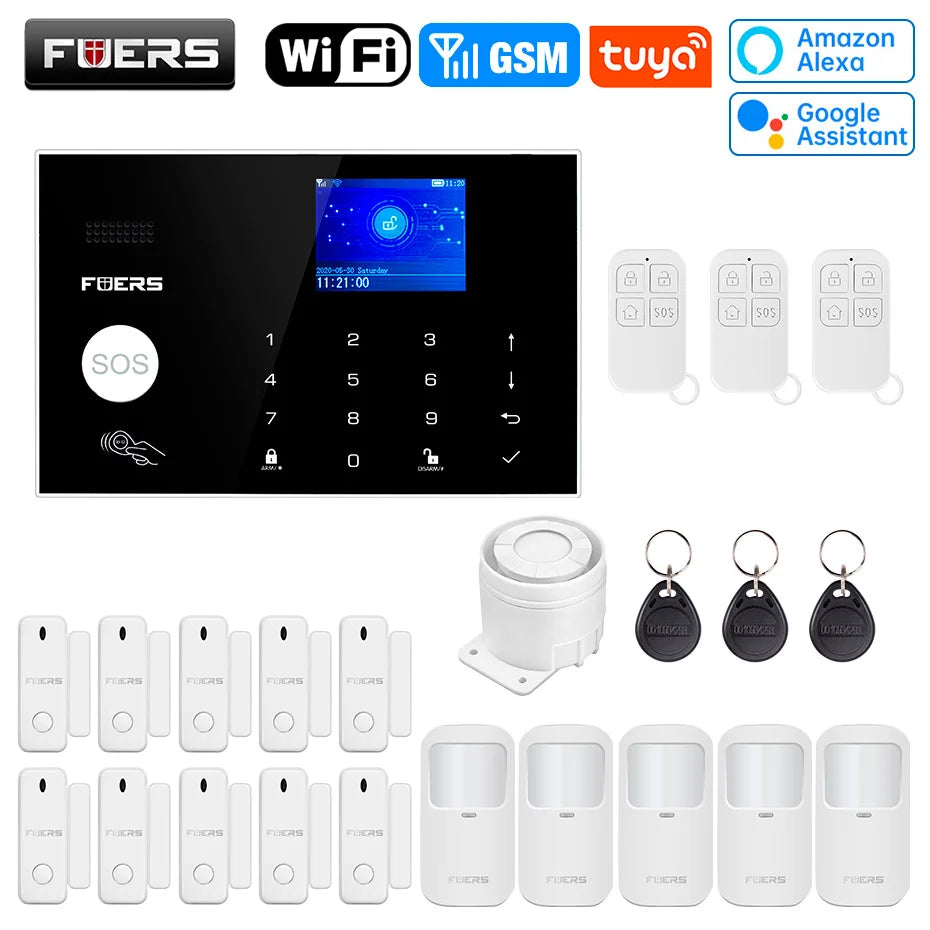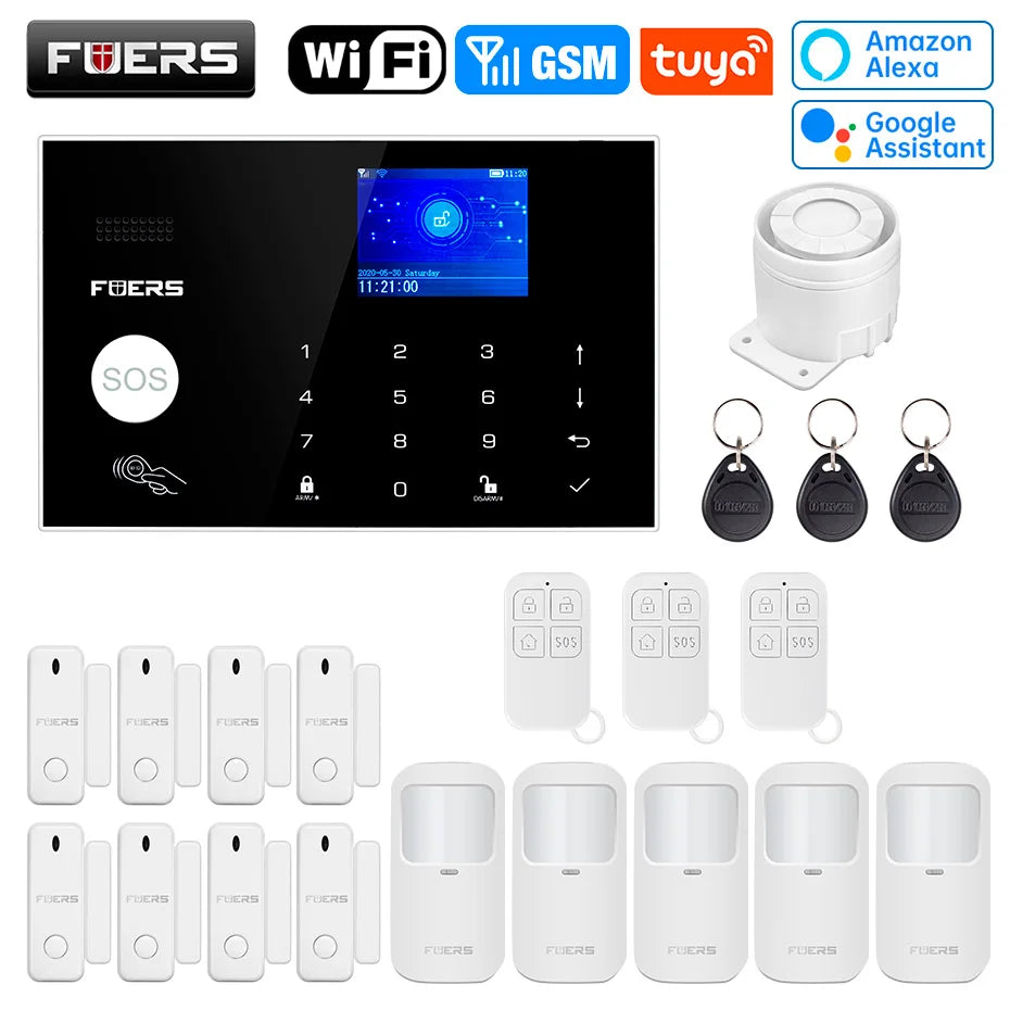 FUERS WIFI GSM Alarm System Wireless Home Burglar Security Alarm System Tuya APP Control Siren Motion Detector PIR Smoke Sensor