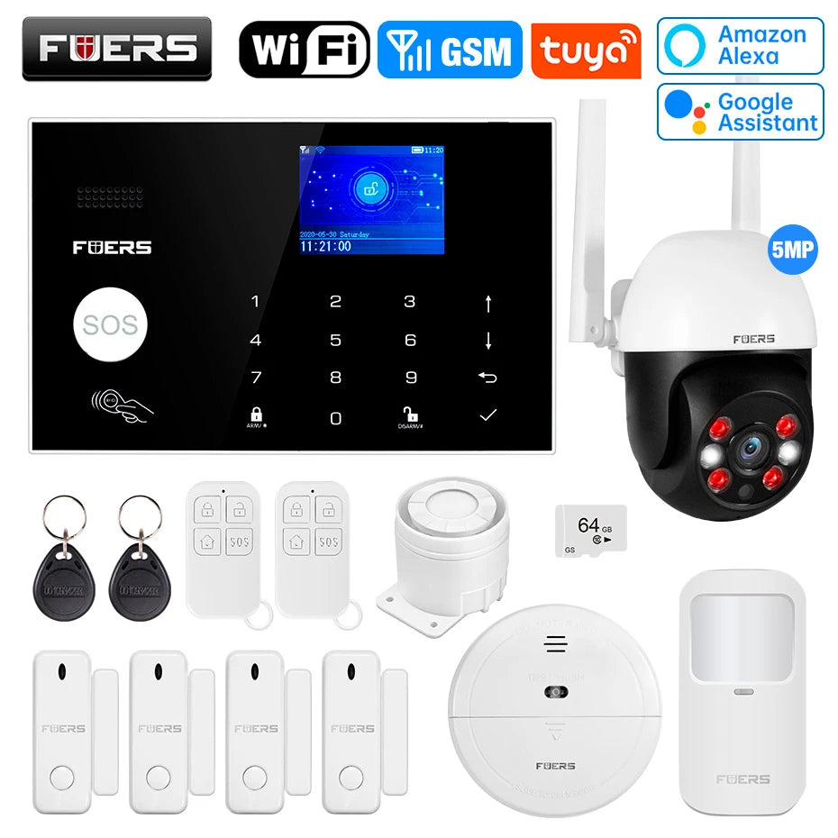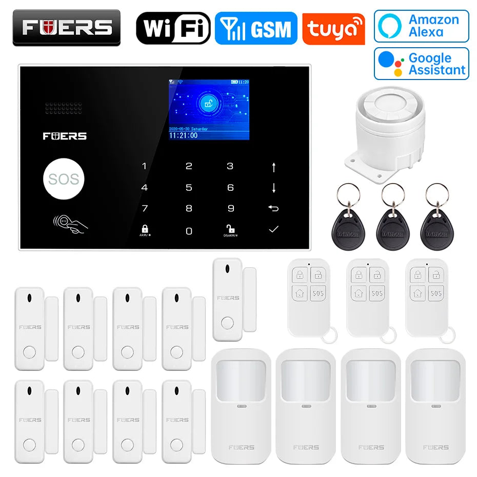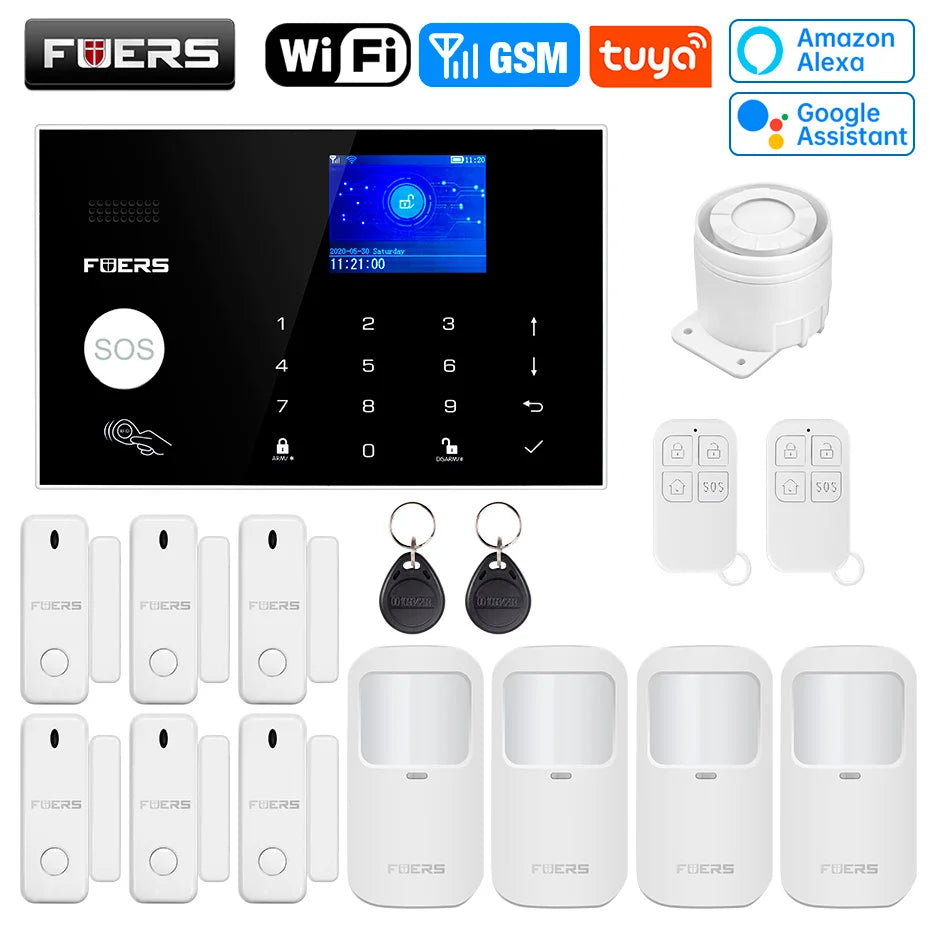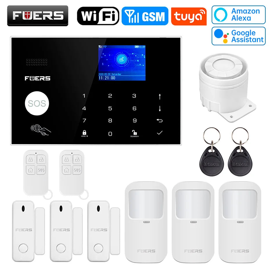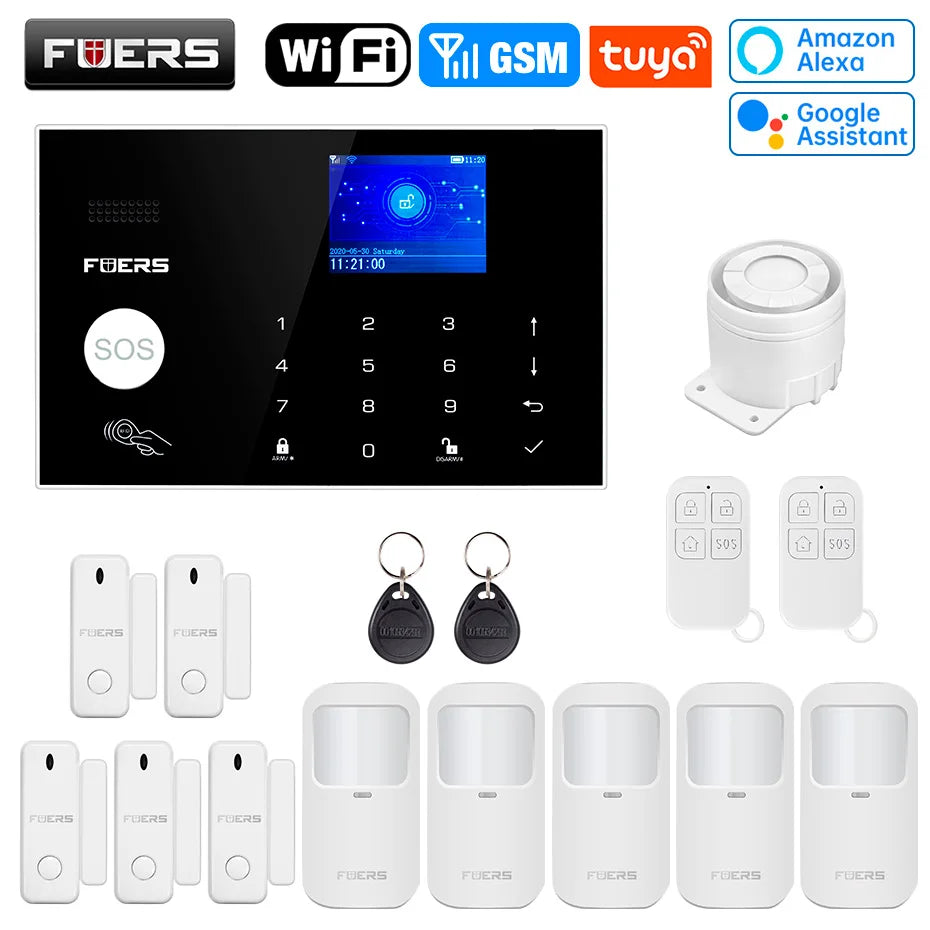 FUERS WIFI GSM Alarm System Wireless Home Burglar Security Alarm System Tuya APP Control Siren Motion Detector PIR Smoke Sensor