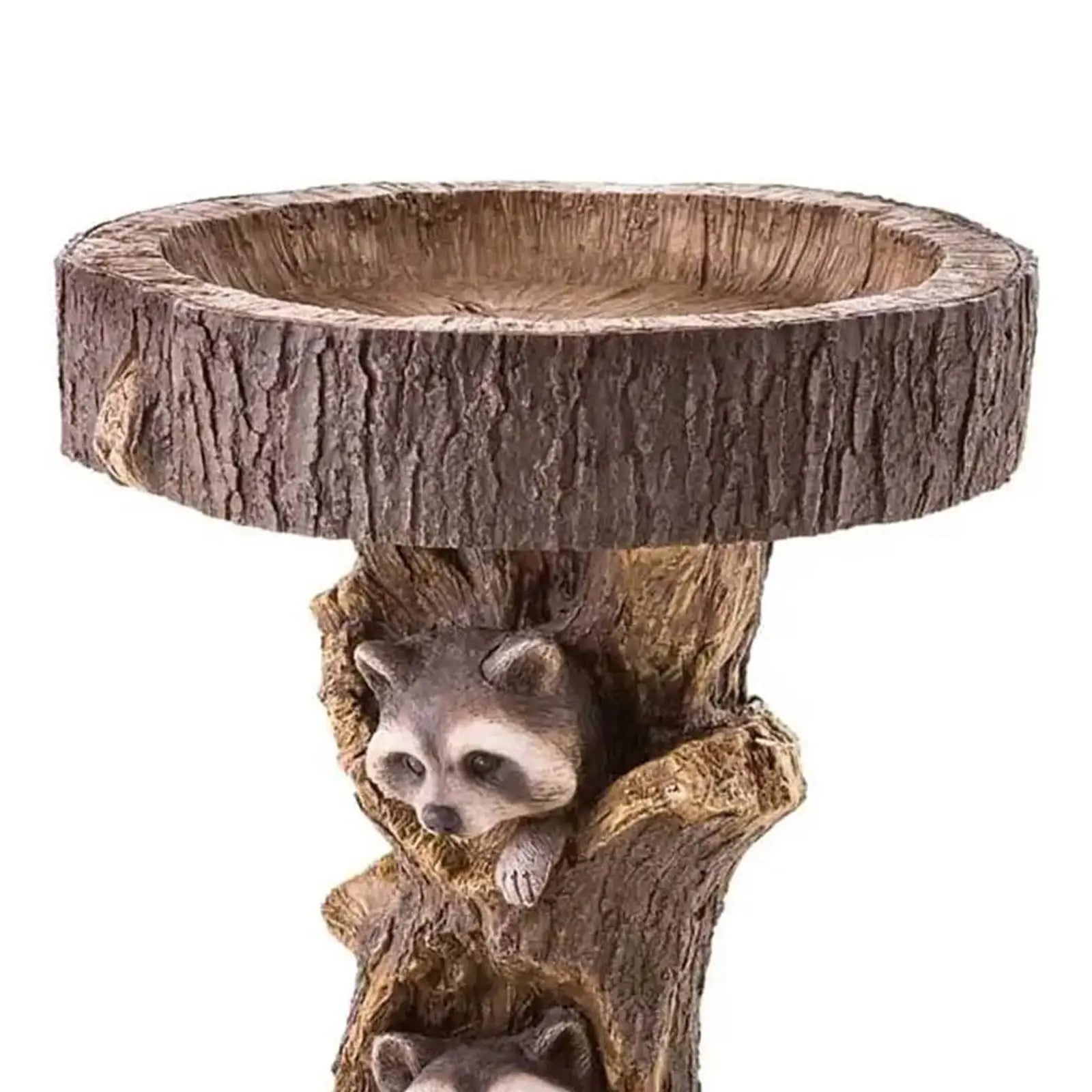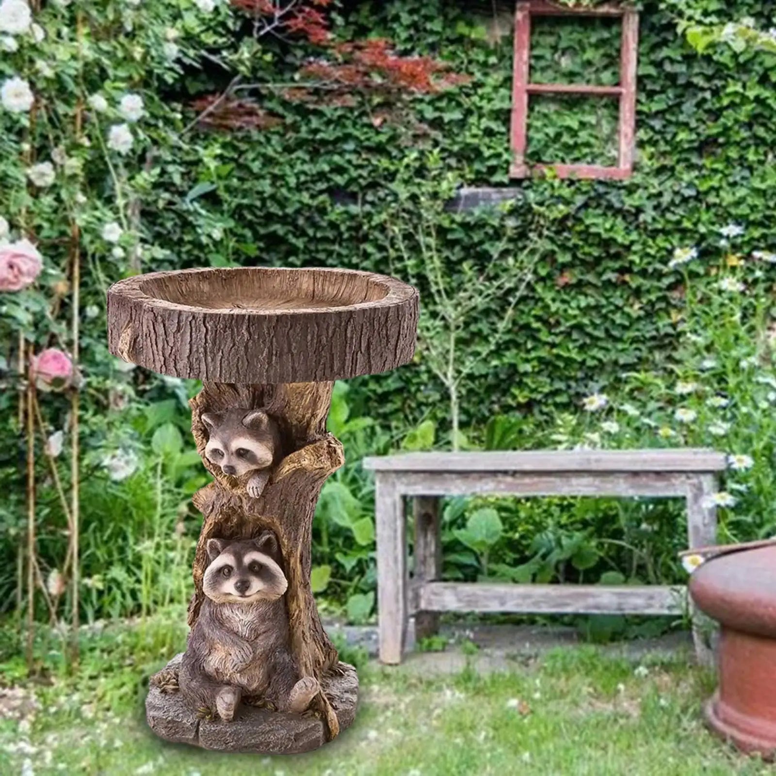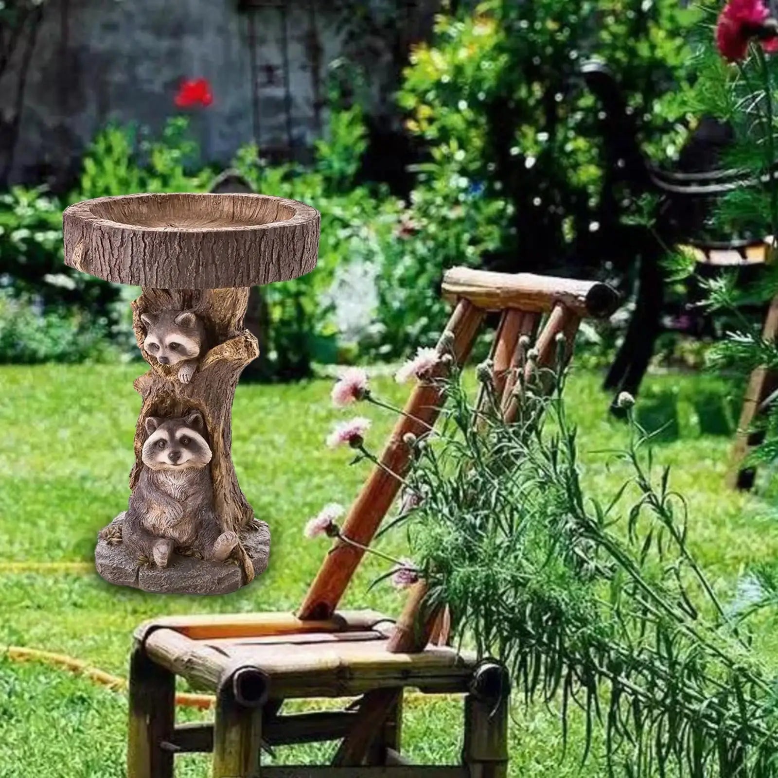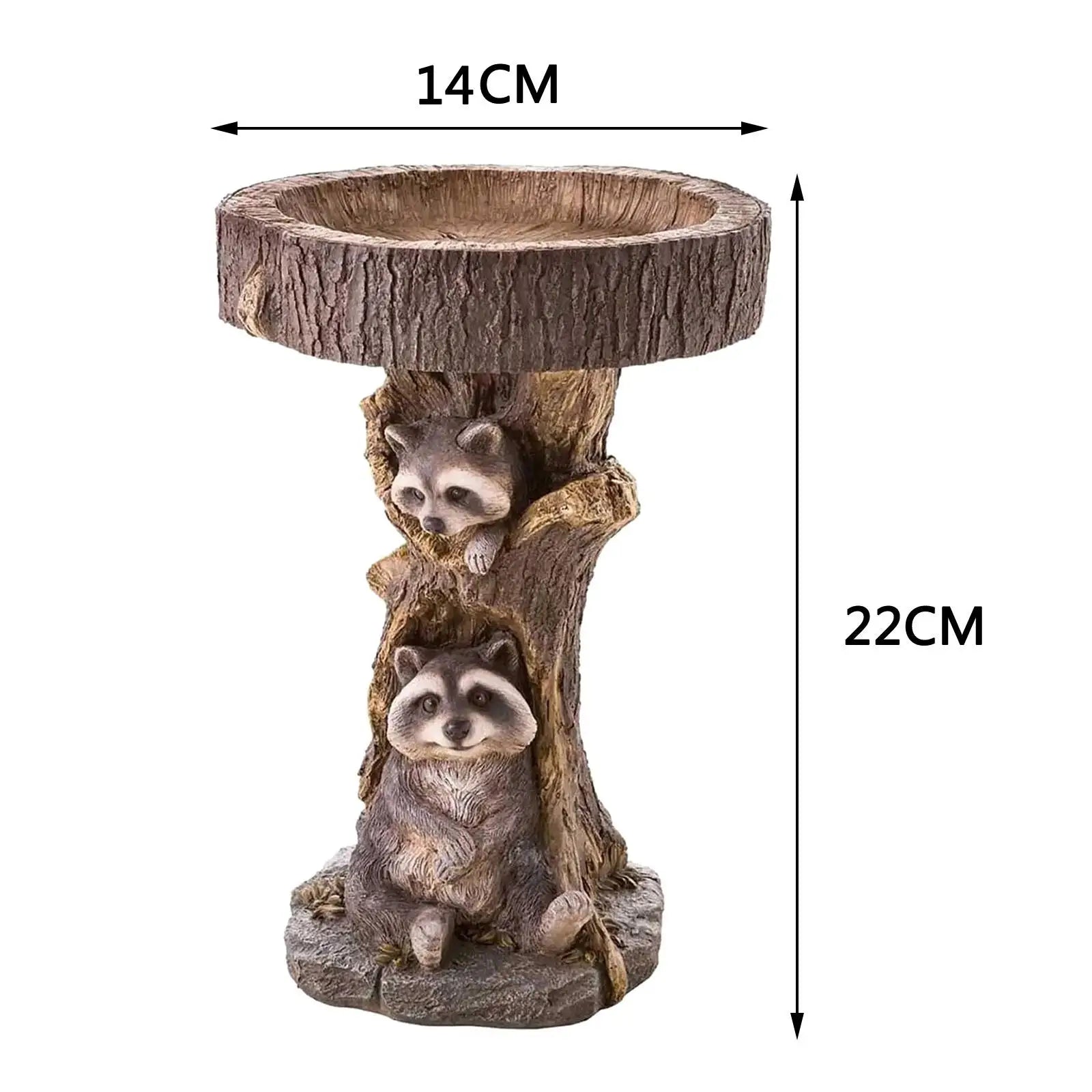 Garden Bird Bath Bowl,Raccoon Statue Figurine Outdoor Patio Lawn Resin Feeder Animal Sculpture for Park,Fence,Balcony,Outside