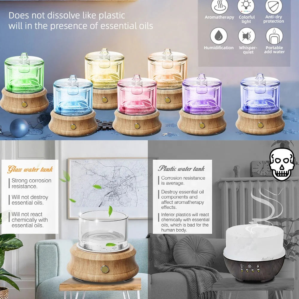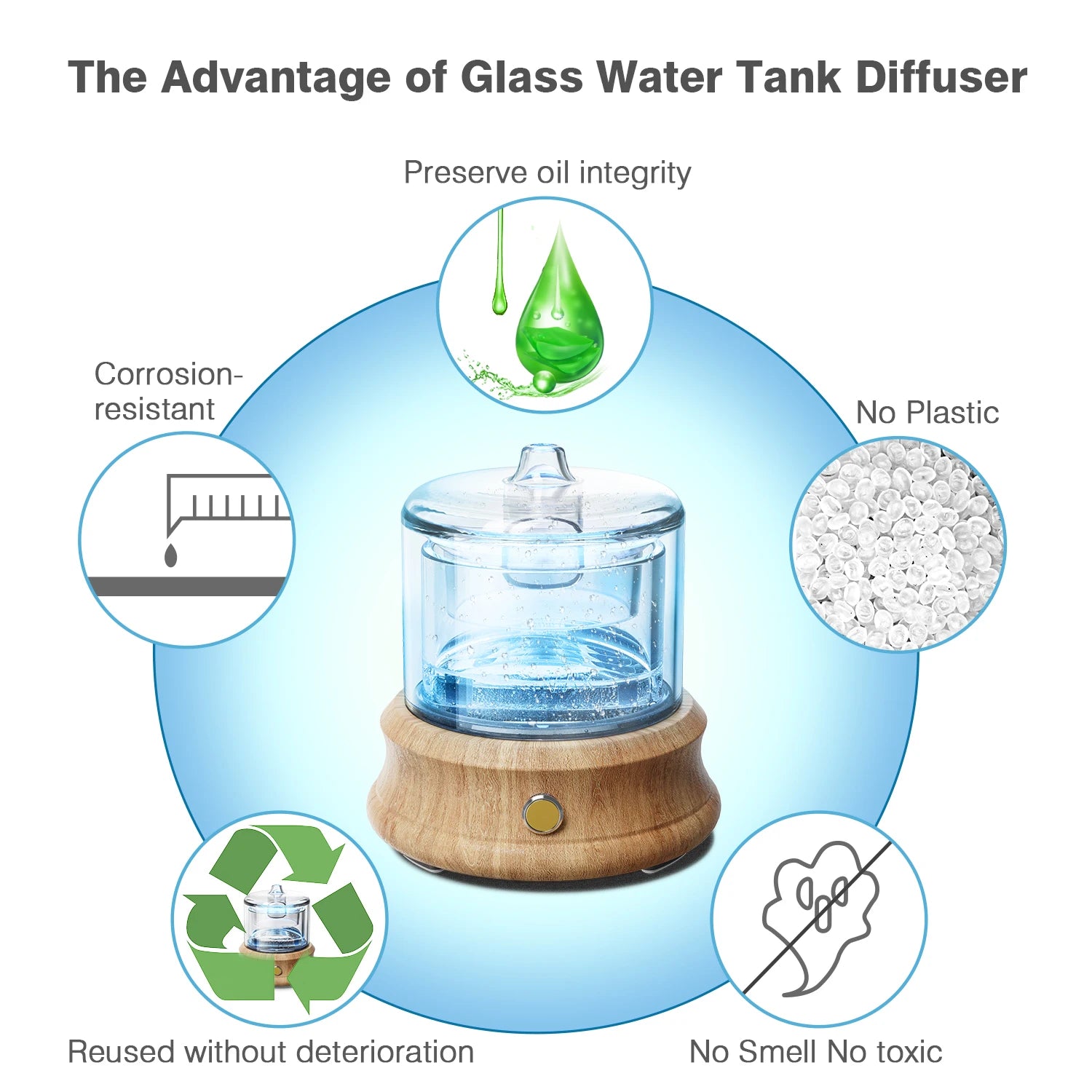 Glass Essential Oil Diffuser Humidifier Waterless Auto Shut-Off Colors Lights Aroma Diffusers For Bedroom Home Yoga Gift 80ML