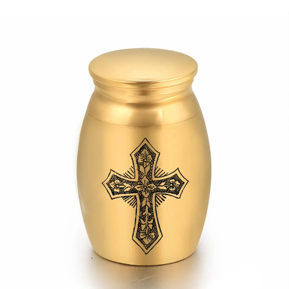 Grace Aluminum Alloy Cross Adult Small Cremation Urn for Human Pet Ashes - A Warm and Lovely Mini Urn to Honor Your Loved One