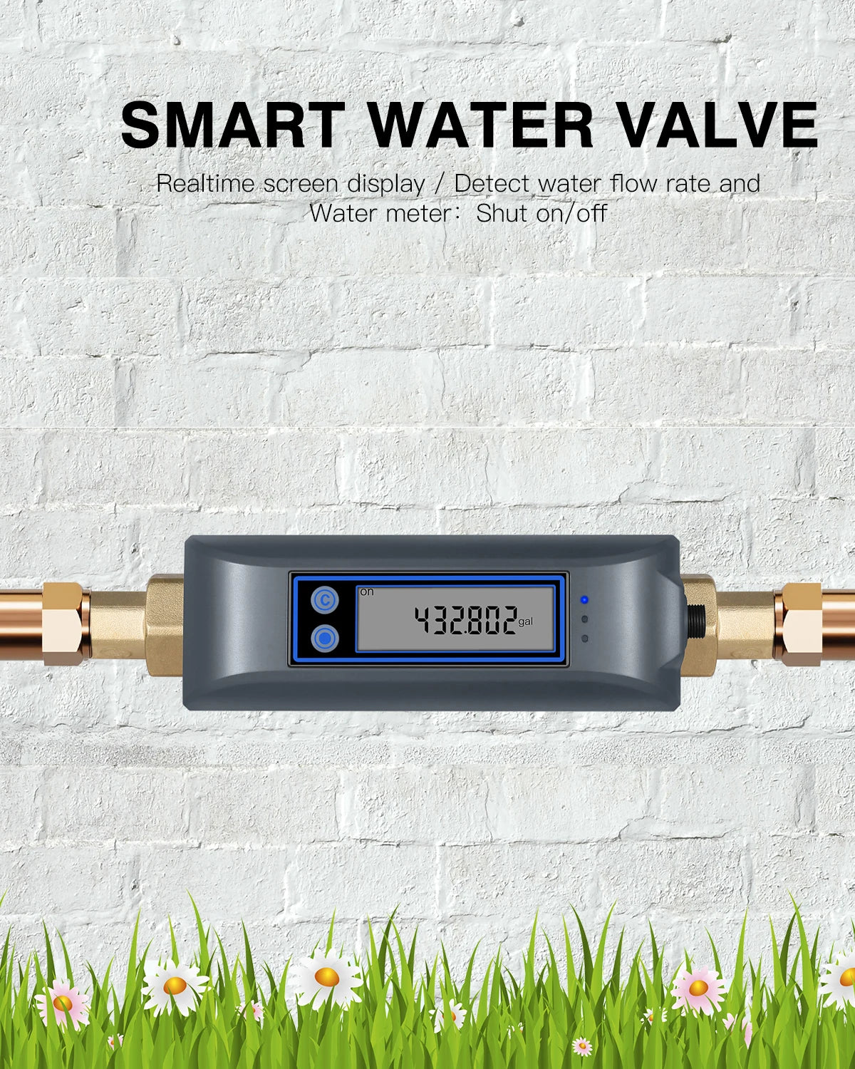 Haozee Tuya Smart WiFi Water Shutoff Valve Water Flow Rate And Water Meter Shut On/Off Remote Control Real Time Display