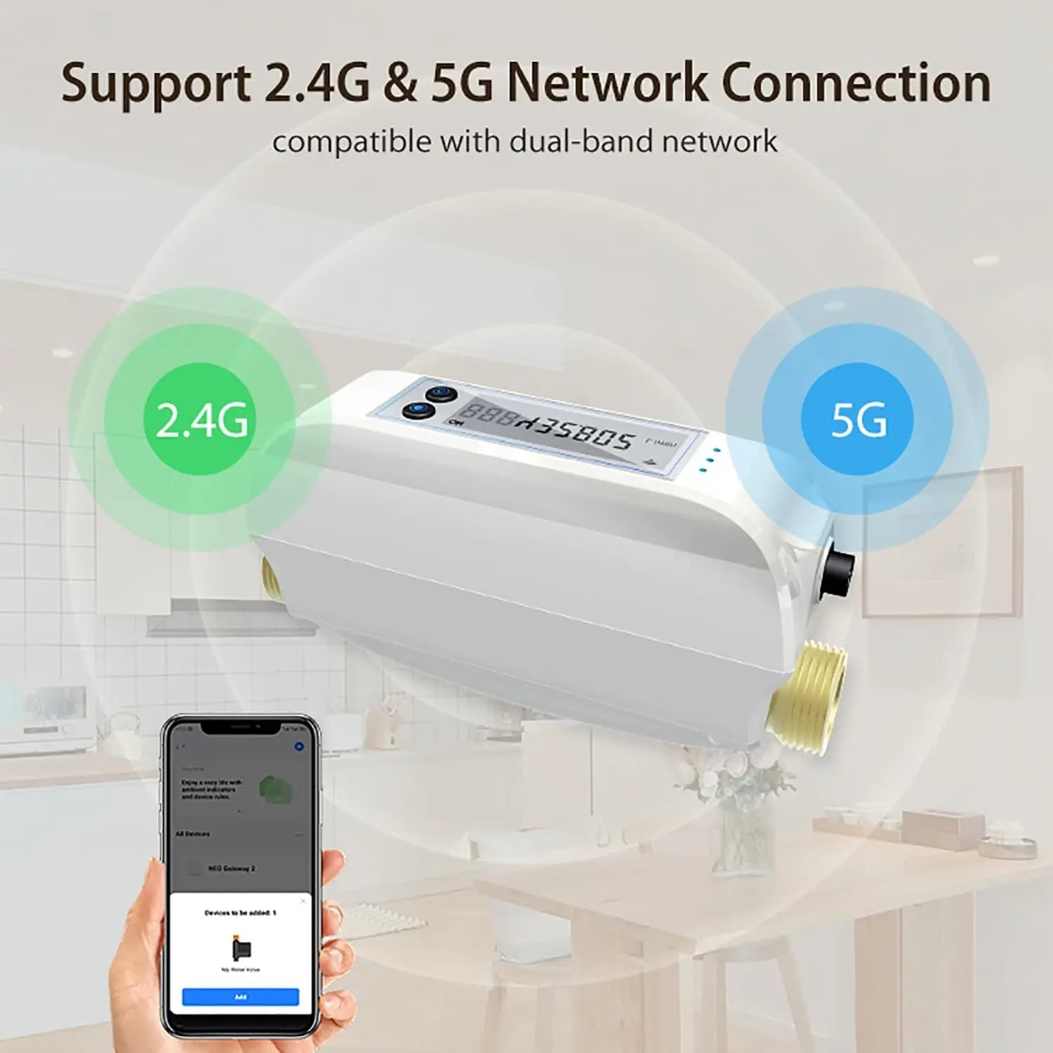 Haozee Tuya Smart WiFi Water Valve Shutoff Water Flow Meter Built in Rechargable Battery for DN20 3/4-Inch Diameter Pipe