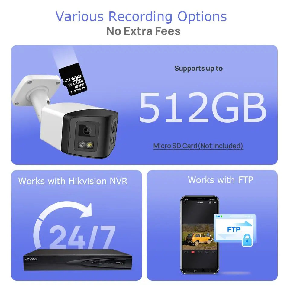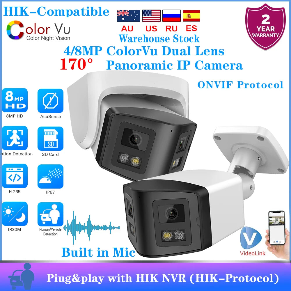 Hikvision Compatible 4/8MP Dual-Lens Security Camera 180° Ultra Wide Panoramic IR&ColorVu 2-way Audio Onvif Surveillance Camera