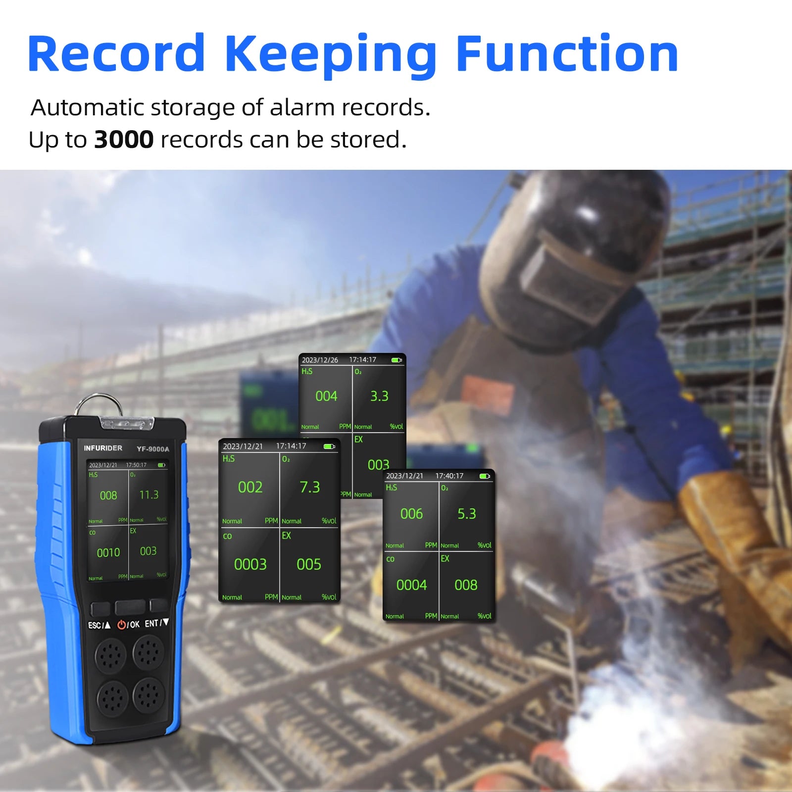 HOLDPEAK Handheld Gas Detector, O2 EX H2S CO Gas Analyzer, Air Quality Monitor Industrial Safety, Four-In-One Gas Sensor