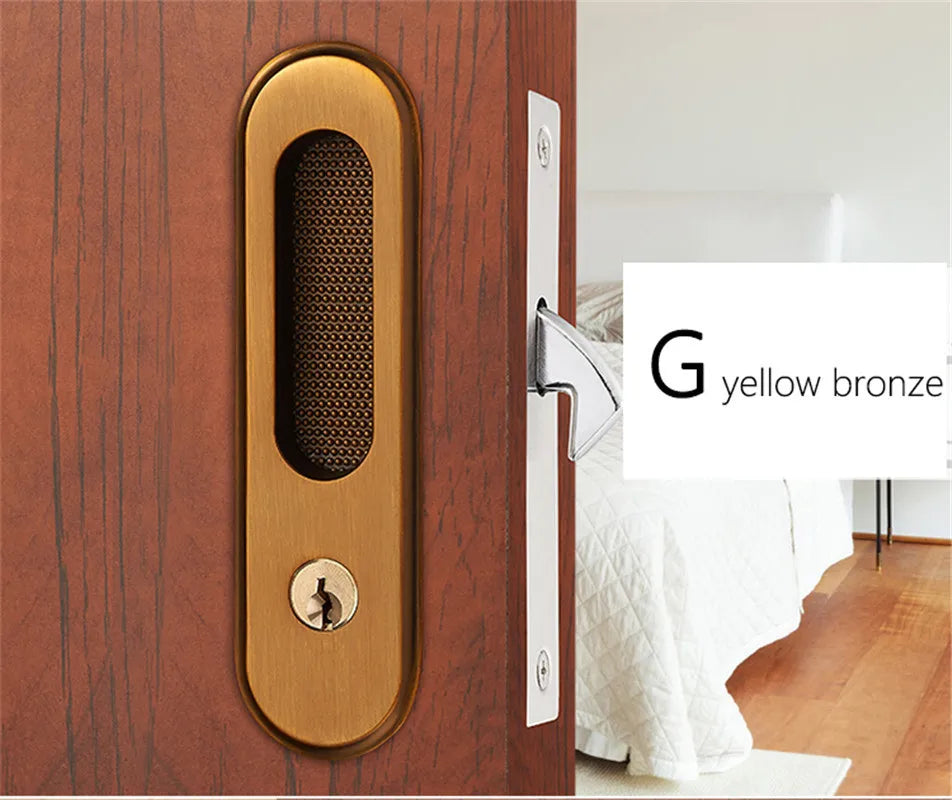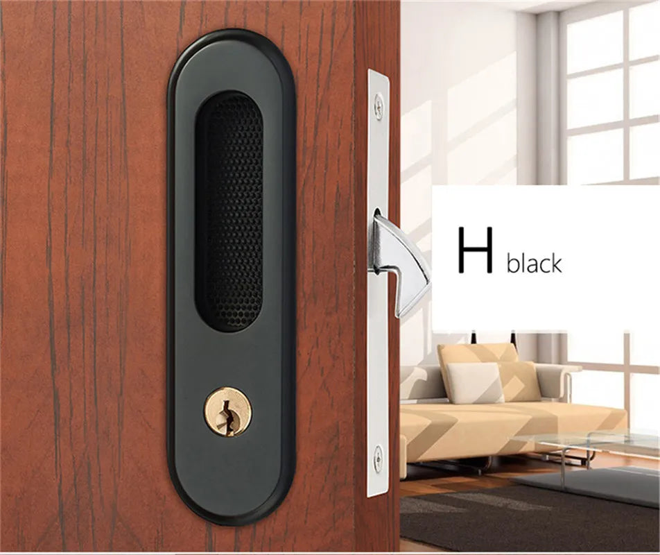 KAK Mute Mortice Sliding Door Lock Hidde Handle Interior Door Pull Lock Modern Anti-theft Room Wood Door Lock Furniture Hardware