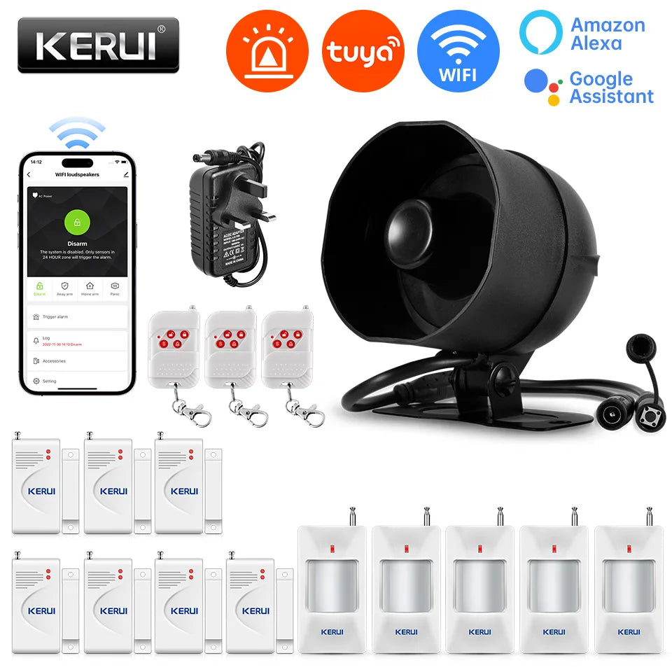 KERUI 120db Tuya Smart WiFi Loudly Speaker Alarm System Burglar Siren Home Security with Door Window Sensor Motion for House