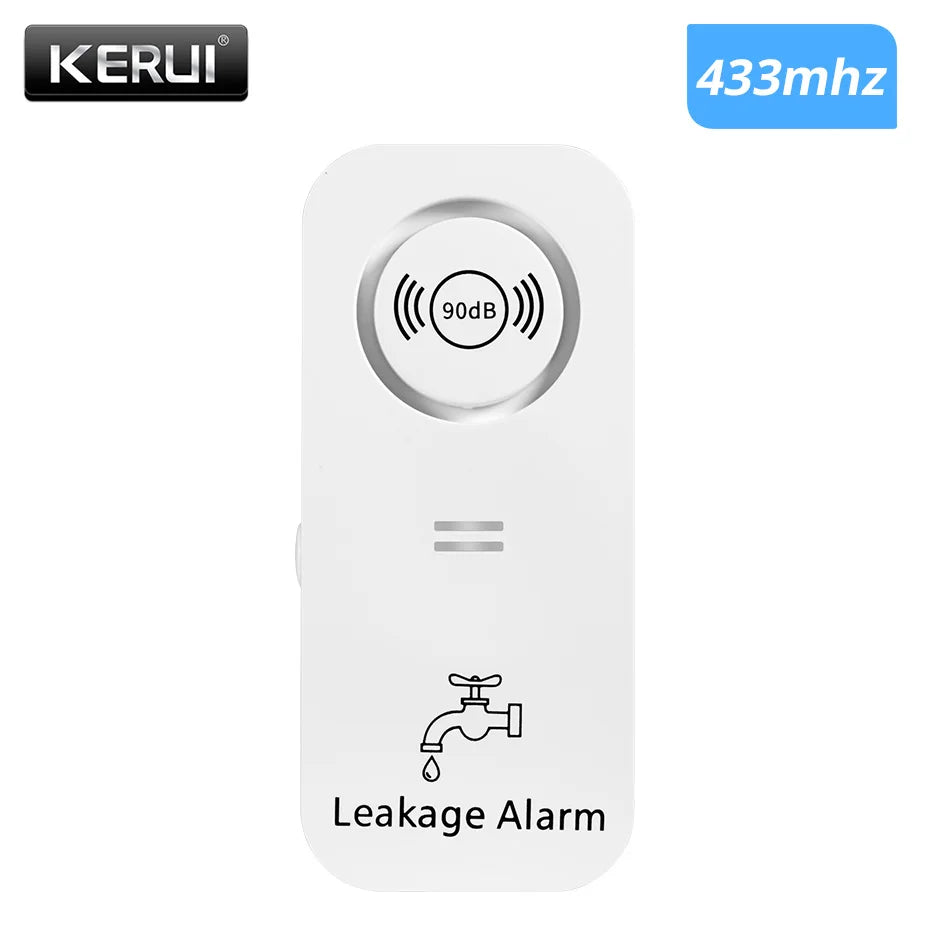 KERUI 433Mhz Leakage Alarm Water Detector Drip Alert with 90db Loud Home Security Overflow Sensor for Kitchen Bathroom