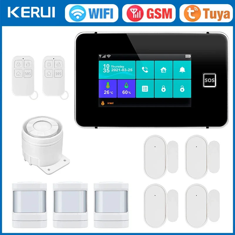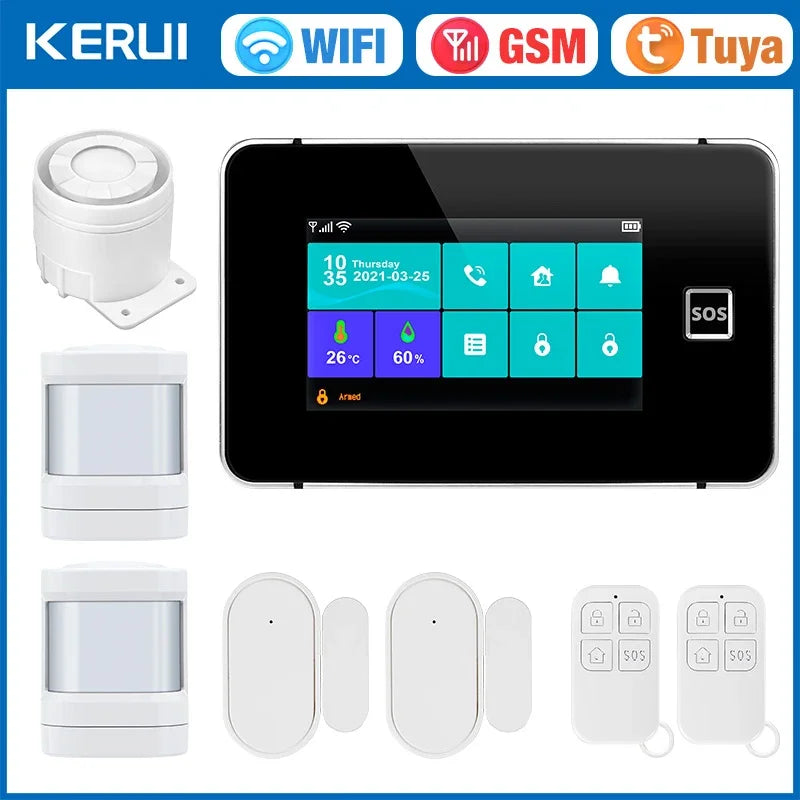 KERUI G60B 2G WIFI GSM Alarm System 4.3inch Touch Screen Panel Tuya Smart Home Alarm with Temperature Humidity Display for House