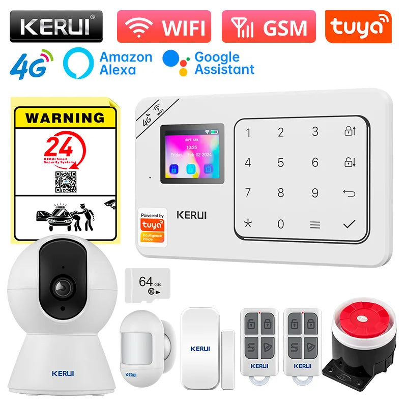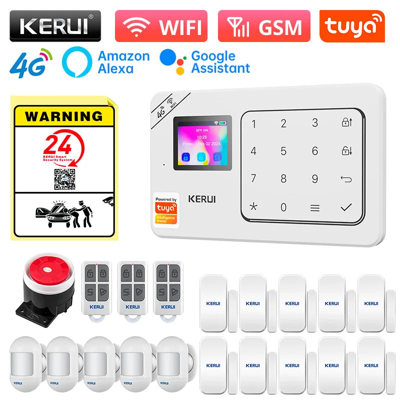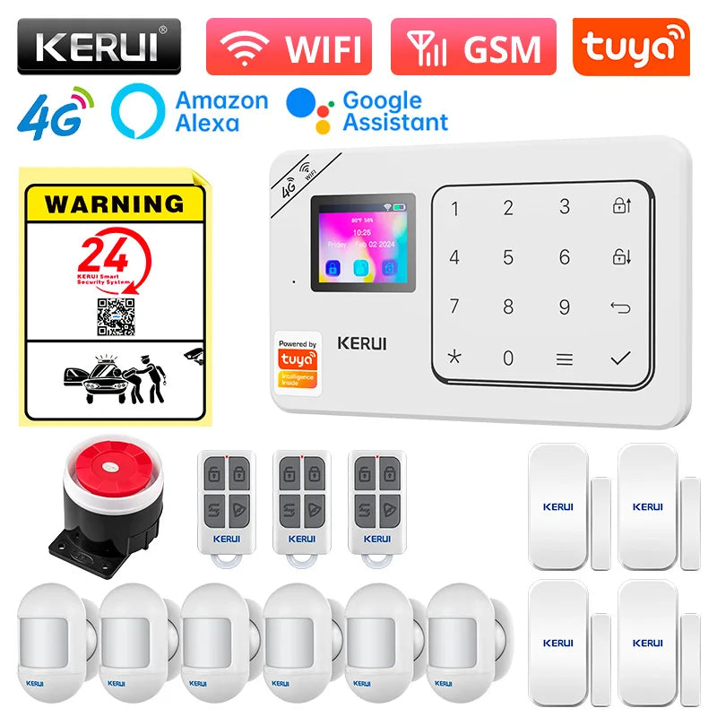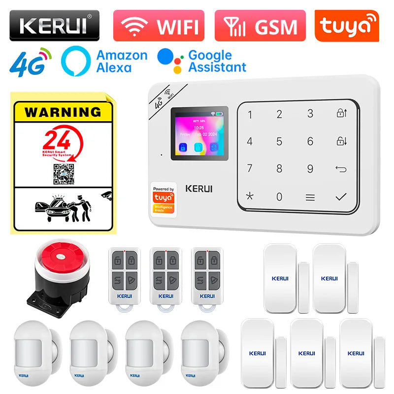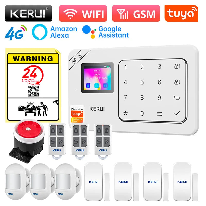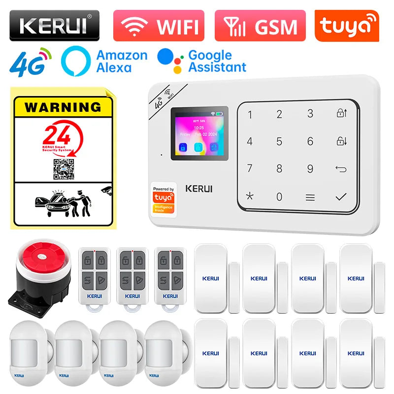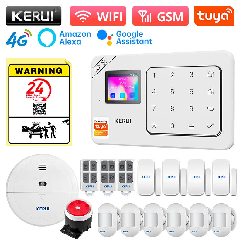 KERUI Home Alarm Worke with Alexa, Tuya Smart Home Sesurity Alarm 4G/WiFi Wireless Burglary Protection, PIR Motion Sensor W184