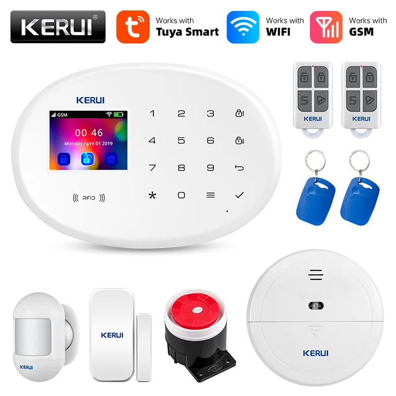 KERUI W202 Tuya WIFI Wireless Alarm System for Home Burglar Security 433MHz GSM Alarm House App Control with ALexa