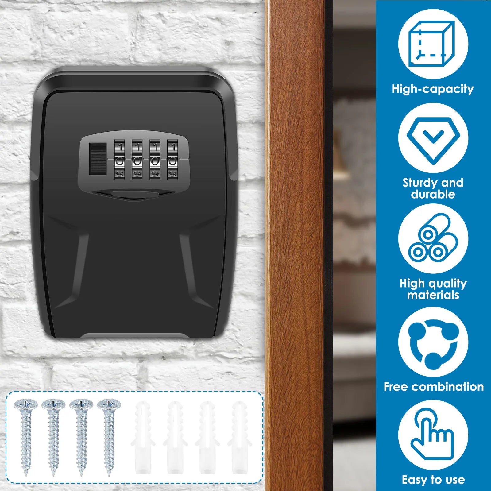 Key Lock Box Wall Mounted Key Safe 4-digit Password Key Secure Storage Lock Manager Multipurpose Key Lockbox for Home Office