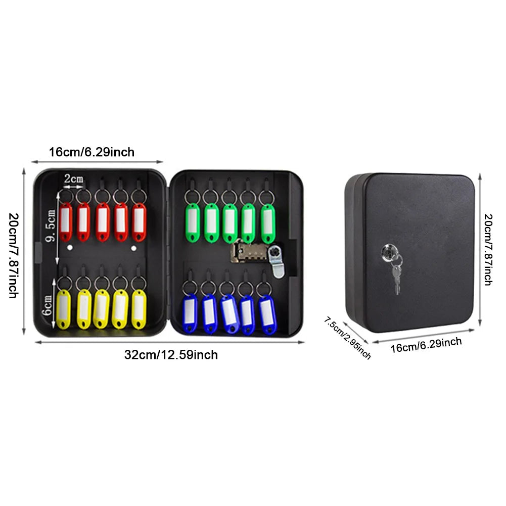 Key Storage Lock Box 20 Key Hooks Combination Key Cabinet Security Lock Box with Key/Code Lock Locking Key Cabinet Key Safe Box