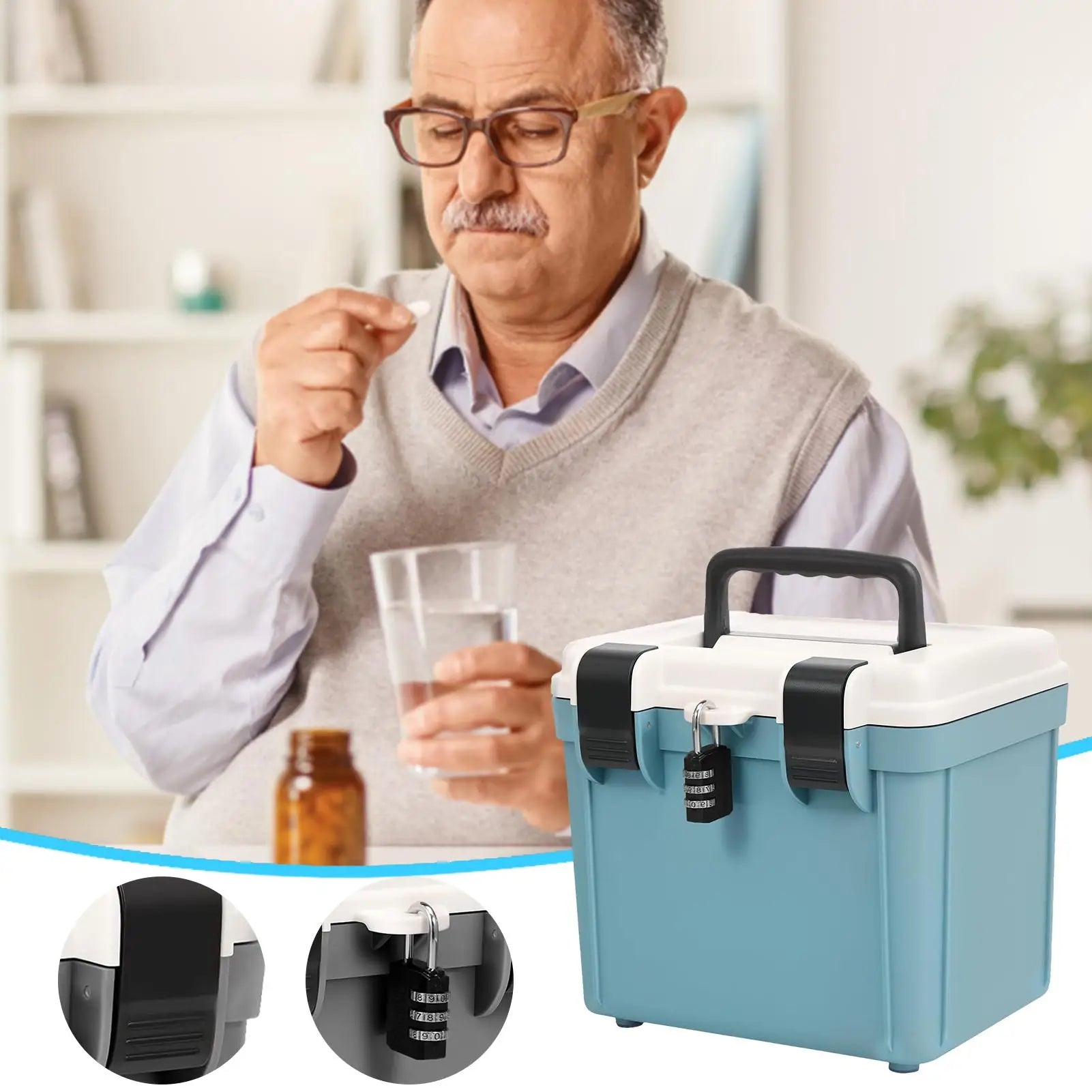 Lockable Medicine Storage Box Combination Safe Box Organizer Portable Password Locking Large Capacity Tool For Document File