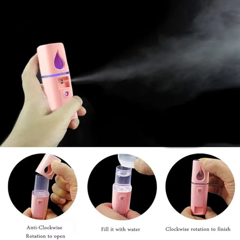 Mini Nano Mist Sprayer Facial Steamer Air Humidifier Atomization Eyelash Moisturizing Skin Facial Hydration Device Portable