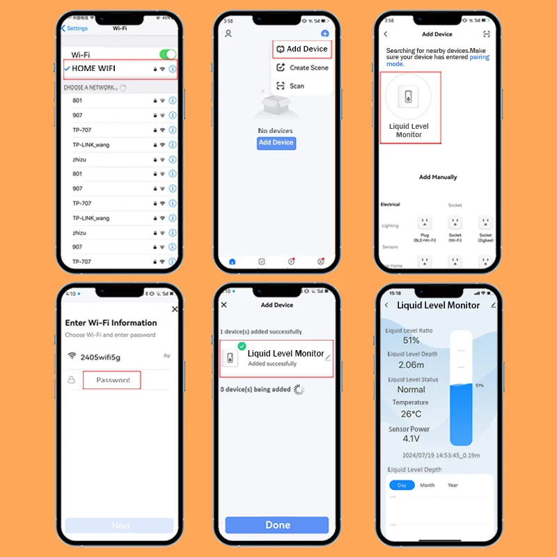 Moray ME201R Tuya APP Ultrasonic Water Liquid Depth LCD Temperature Time Display Low Battery Indicator Alarm Tank Level Monitor