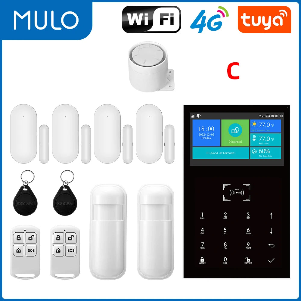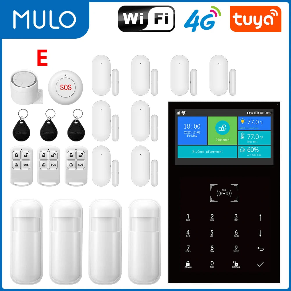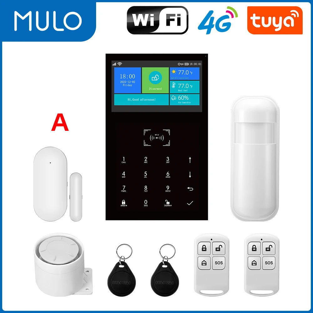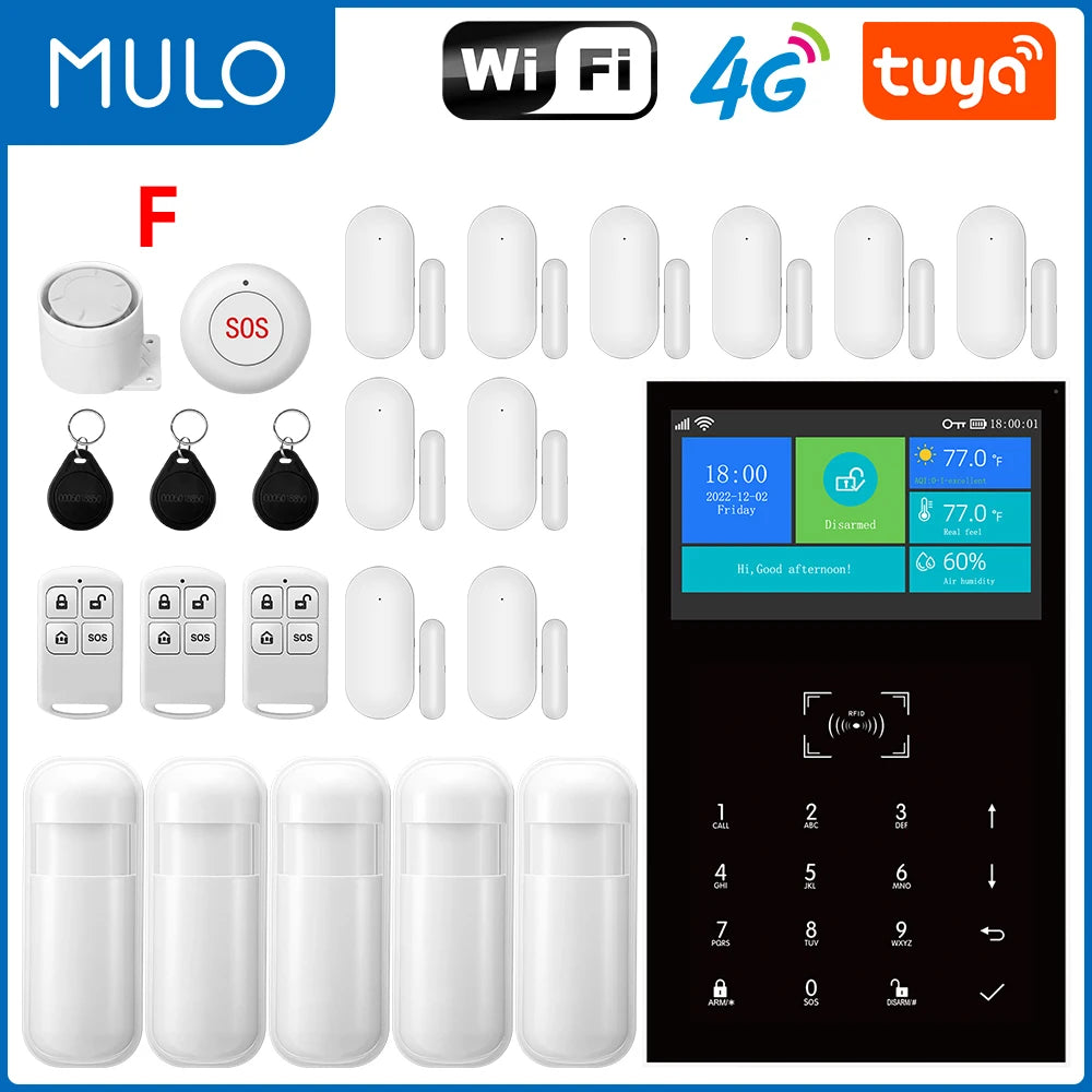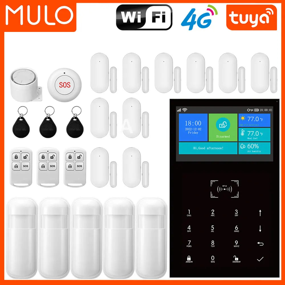 MULO 4G alarm Tuya Smart Home Alarm System WIFI GSM 4.3 inch Temperature Humidity Display PG-109 For Alexa & Google Burglar Home