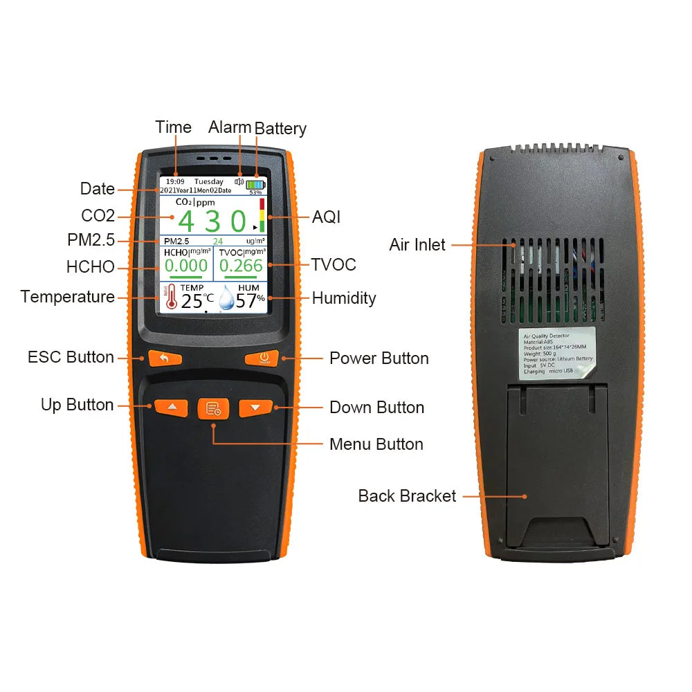 Multi-function PM2.5 Air Quality Detector CO2/PM2.5/HCHO/TVOC Temperature Humidity Sensor Gas Monitor Indoor CO2 Gas Detector