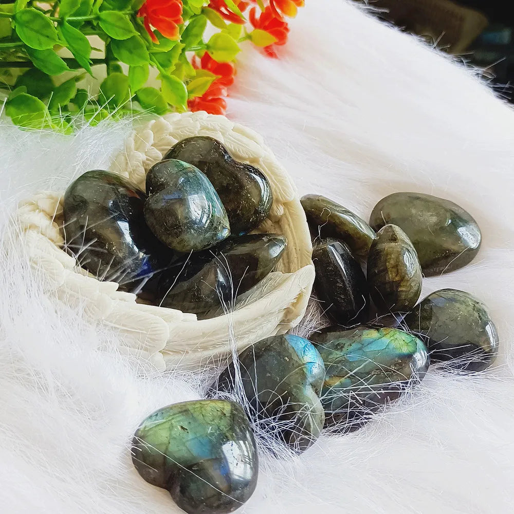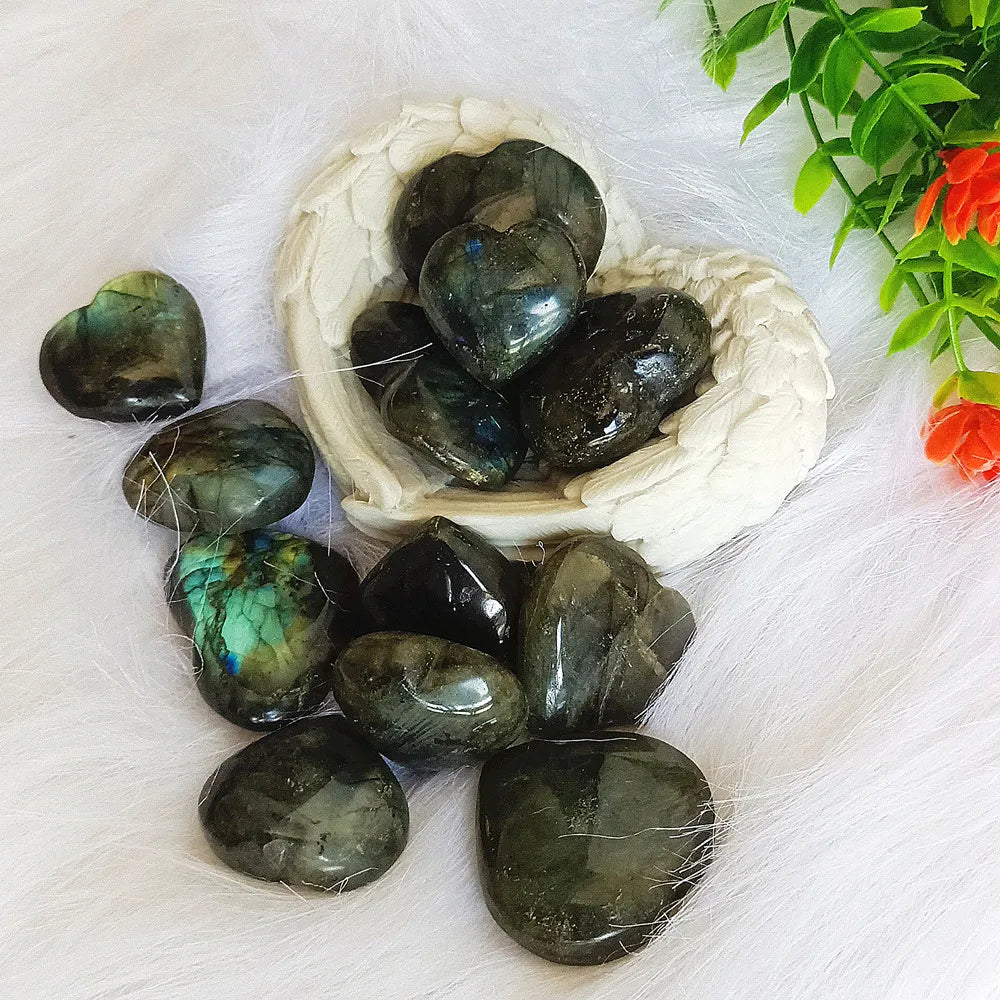 Natural elongated stone polished heart-shaped crystal quartz mineral restoration spiritual decoration