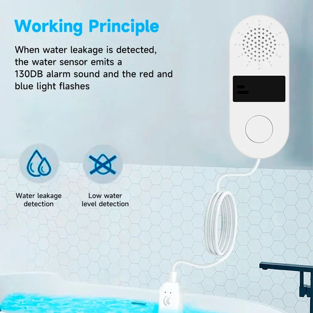 Non-Smart Alarm with Sound & Light 130dB Water Leak Sensor Essential Waterproof Home Safety Device for Leak Detection.