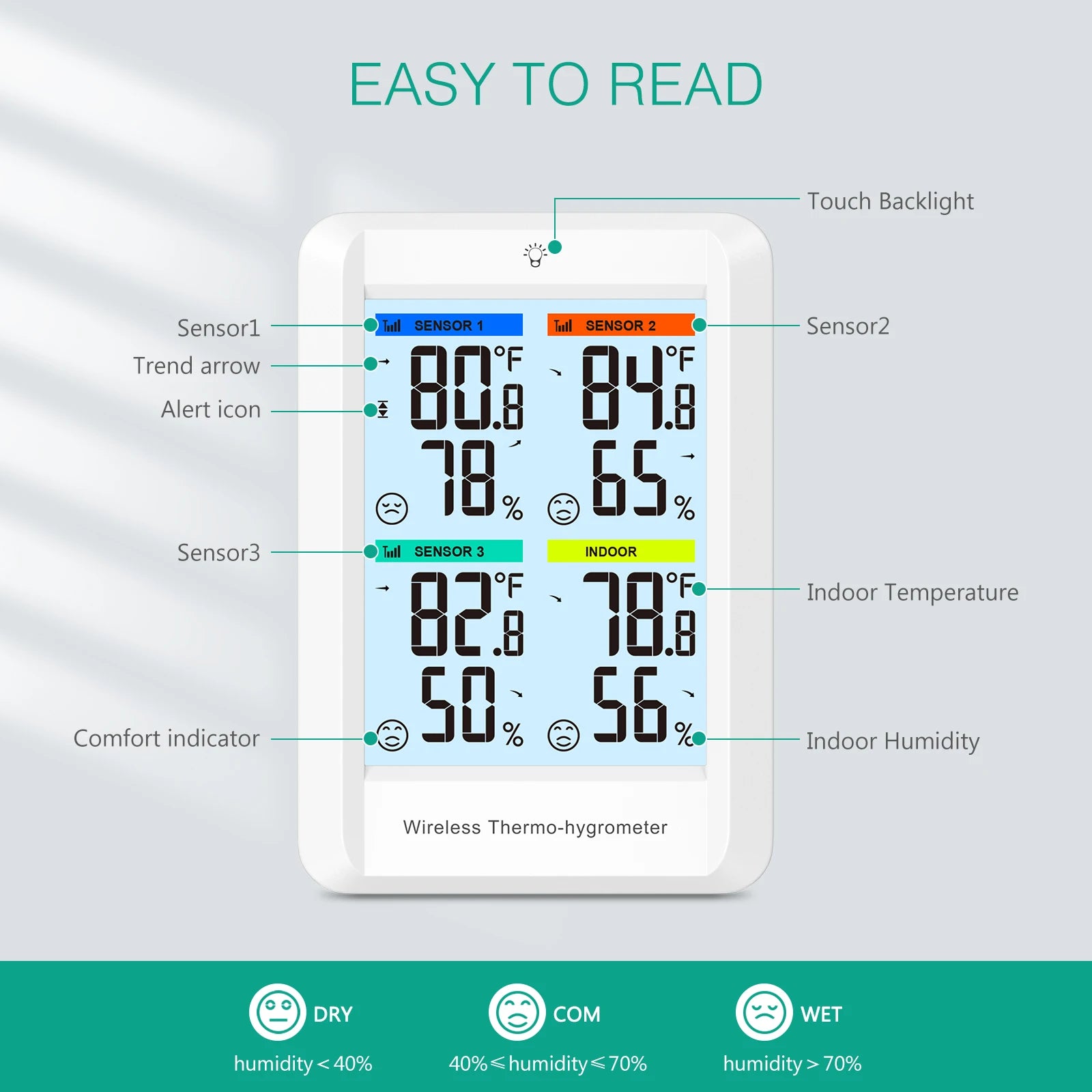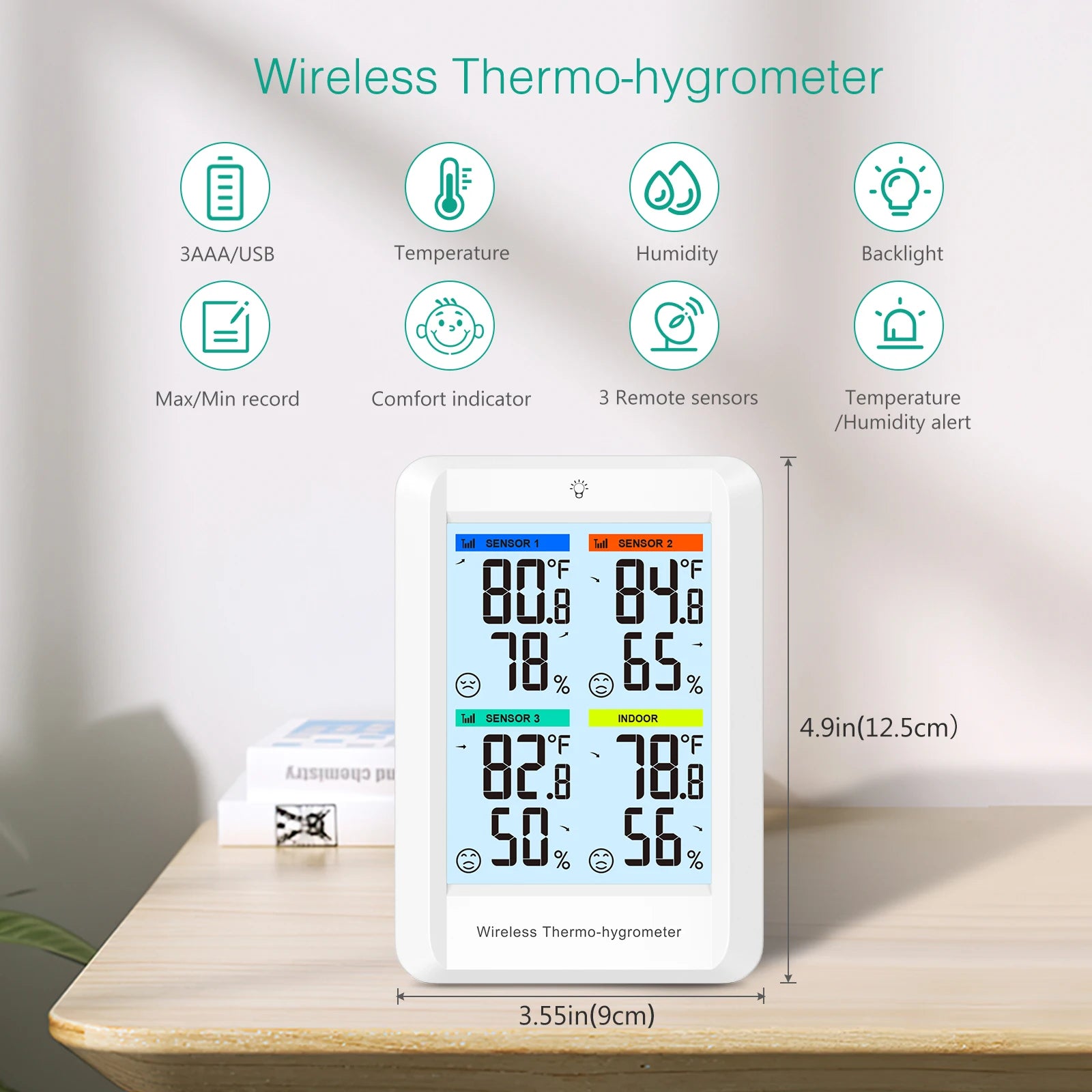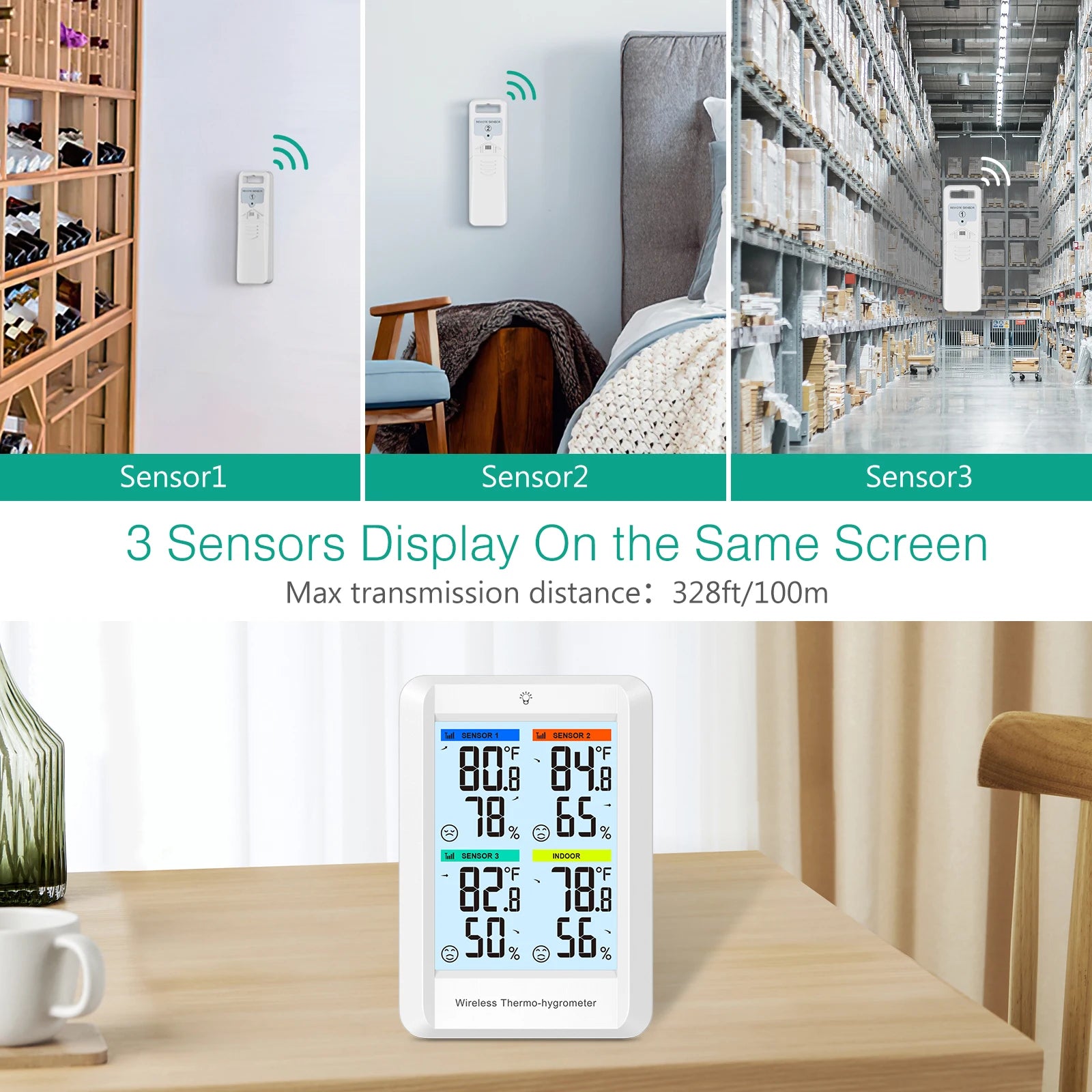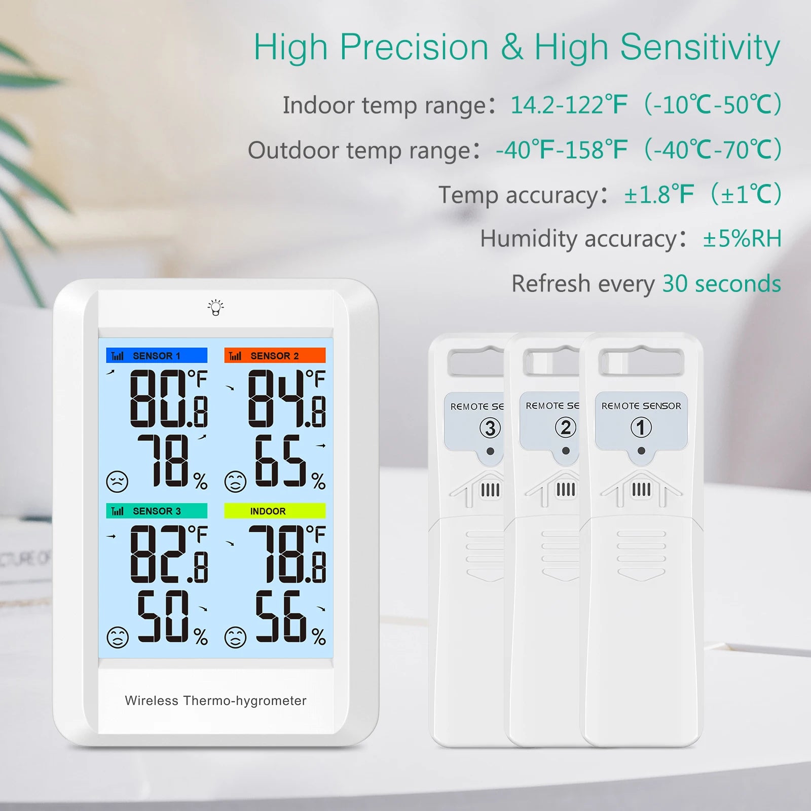 ORIA Digital Wireless Thermometer Indoor Hygrometer Temperature Humidity Monitor with 3 Outdoor Sensors