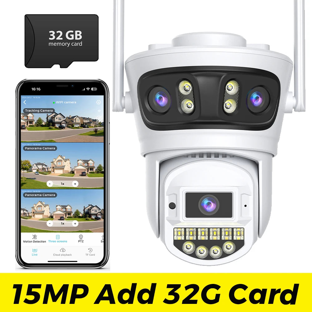 Outdoor Auto Tracking Camera with Multi Screens,15MP, 6K, 5X Digital Zoom, PTZ Security Protection, CCTV Surveillance, O-Kam Pro