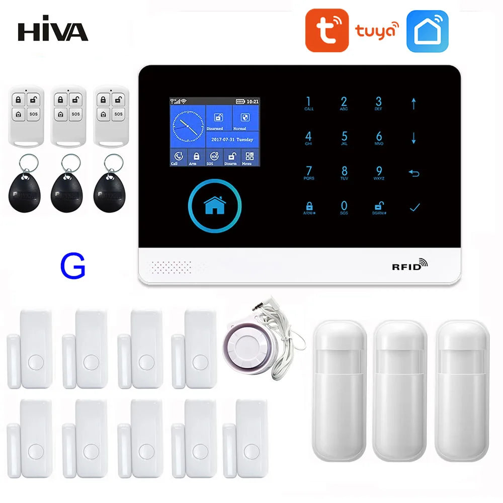 PG-103 Home Security Alarm System Wifi GSM Alarm Intercom Remote Control Autodial 433MHz Detectors IOS Android Tuya APP Control