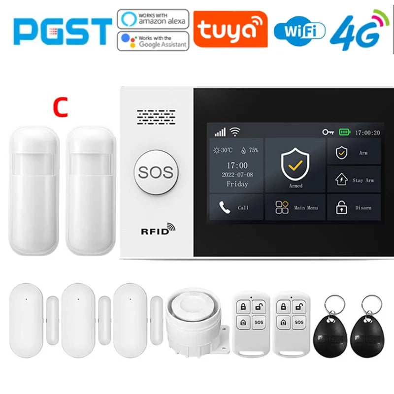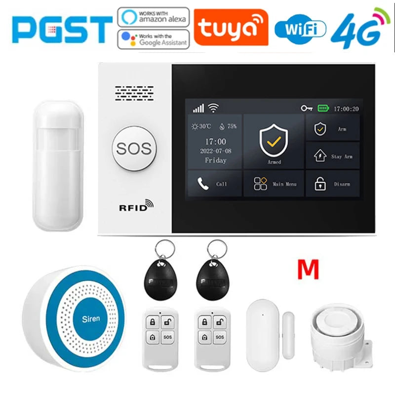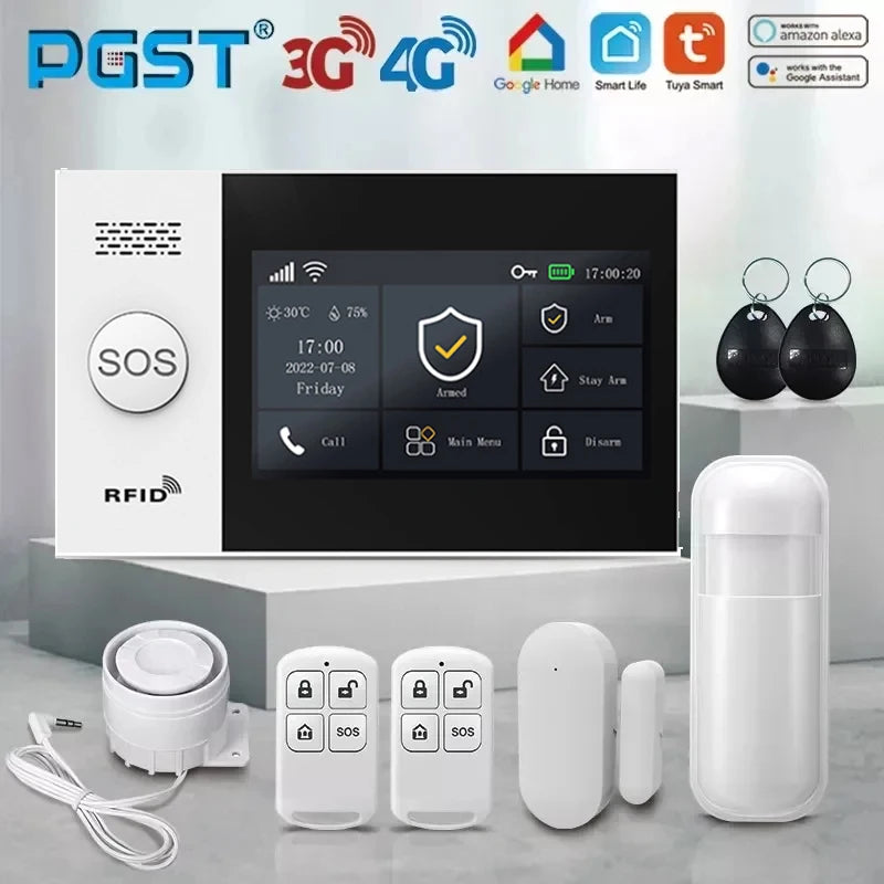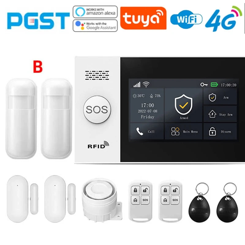 PGST 4G PG107 Tuya Wireless Home Alarm WIFI GSM Home Safety Belt Motion Detector Sensor Anti theft Alarm System Supports Alexa a