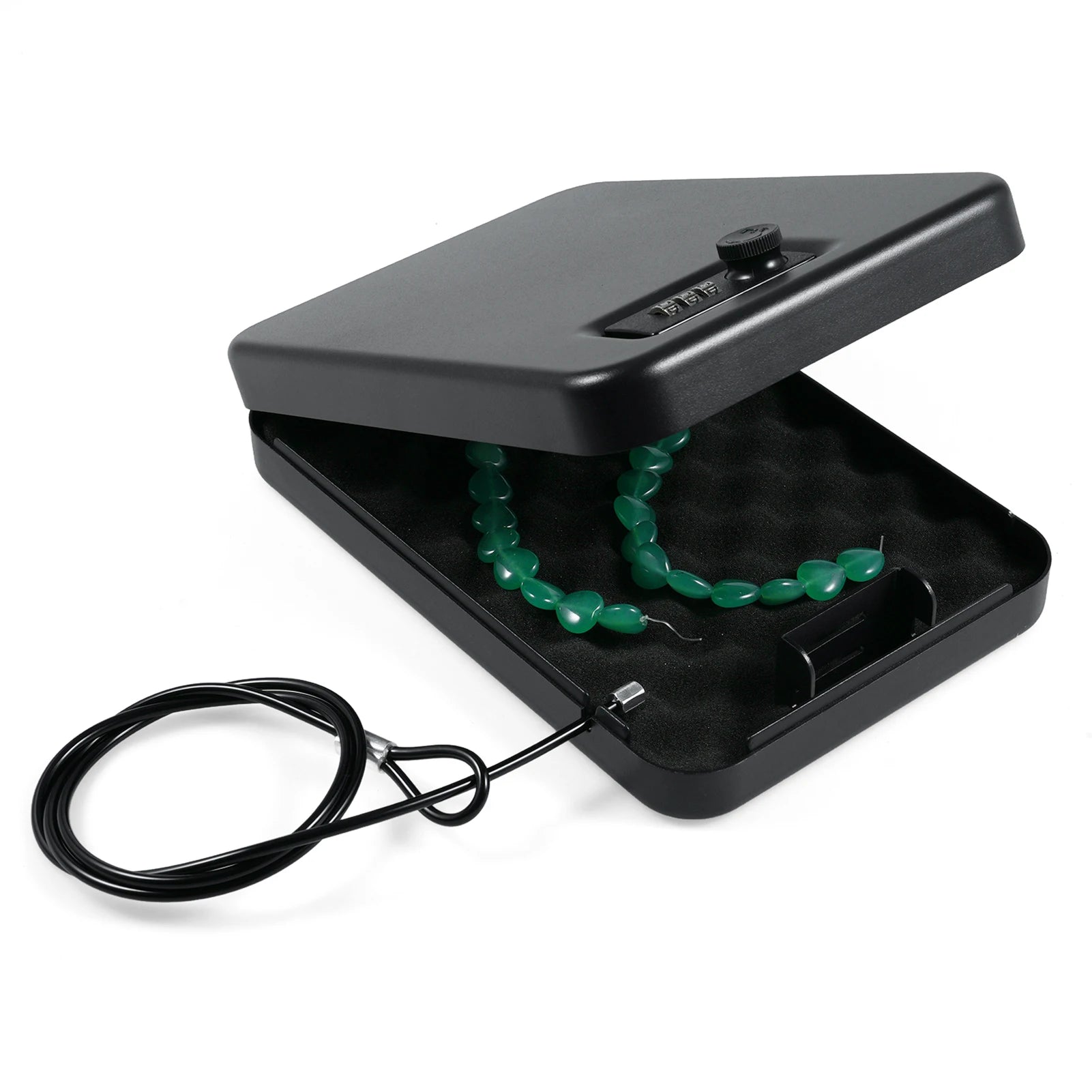 Small Safe Box Portable Travel Lock Storage Cabinet 3-digit Password Case with Security 3Ft Steel Cable for Passport Jelwery