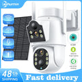 Solar IP Camera WiFi Outdoor Dual Lens PTZ Security Camera 4MP HD Built in Battery Solar Panel Wireless Camera PIR Alarm iCsee