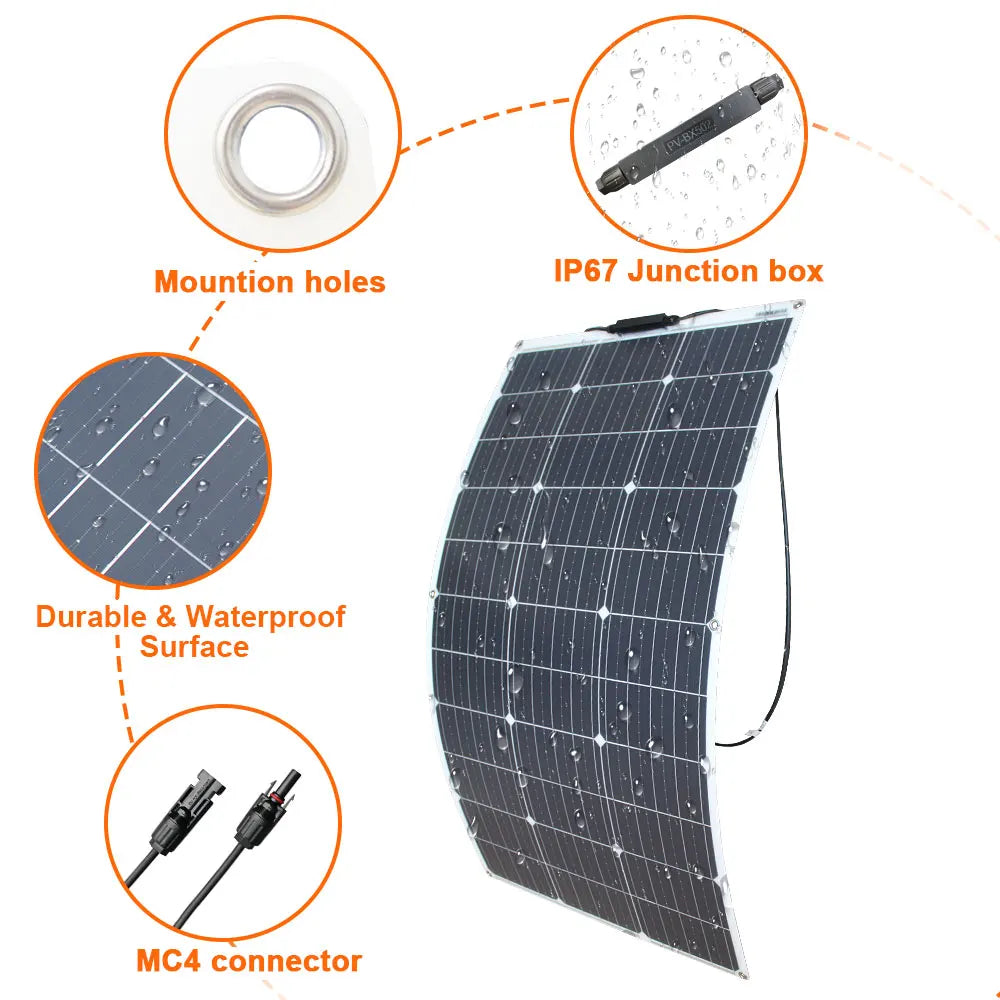 solar panel kit 100w 200w 300w 400w 500w 600w 12v solar battery charger outdoor portable flexible solar panels for home/RV/boat