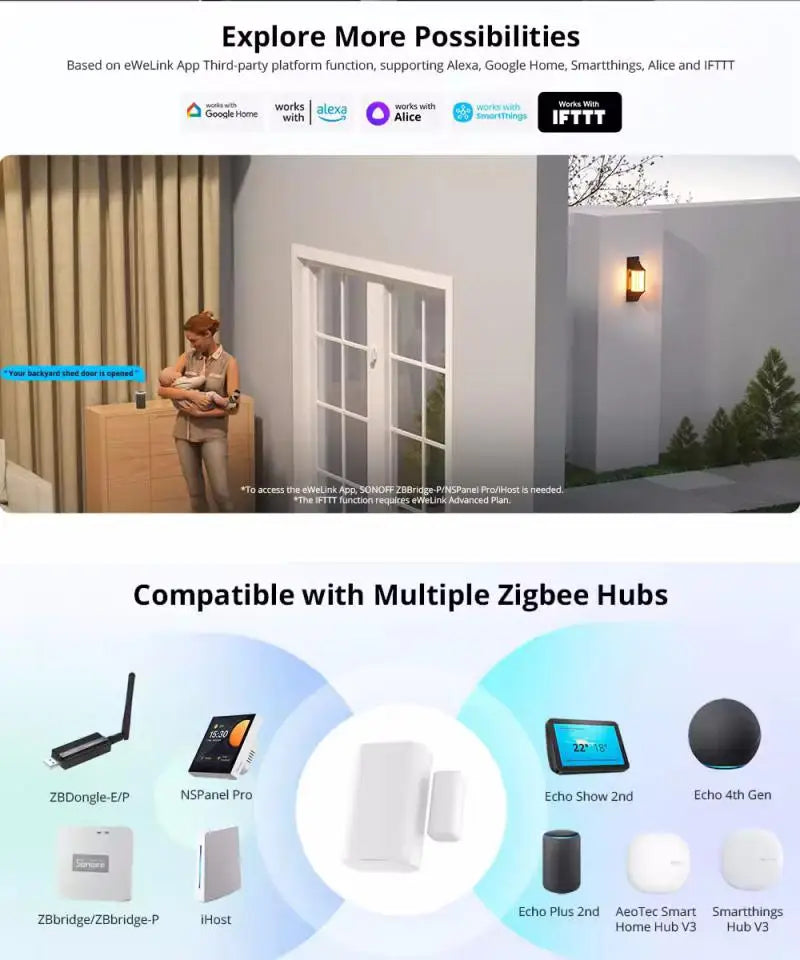 SONOFF SNZB-04P Zigbee Door Window Sensor Local Smart Scene Linkage Tamper Alert Home Security Works with Alexa Google Alice