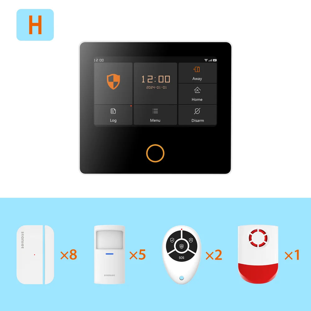 Staniot WiFi 4G Wireless Security Alarm System Built-in Louder Siren Tuya Smart Home Burglar Kit with 5-Year Contact Sensor