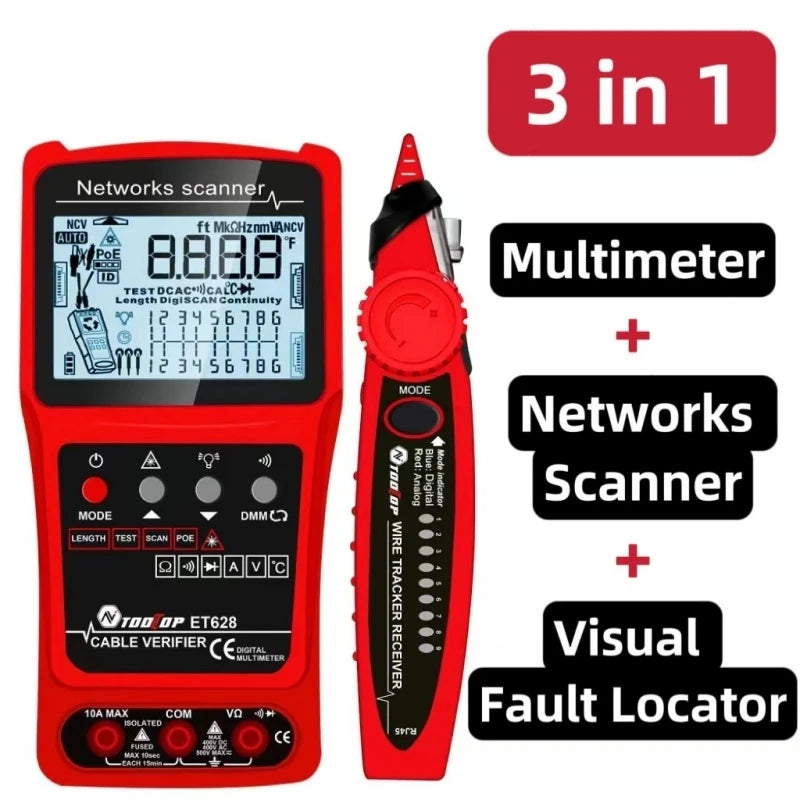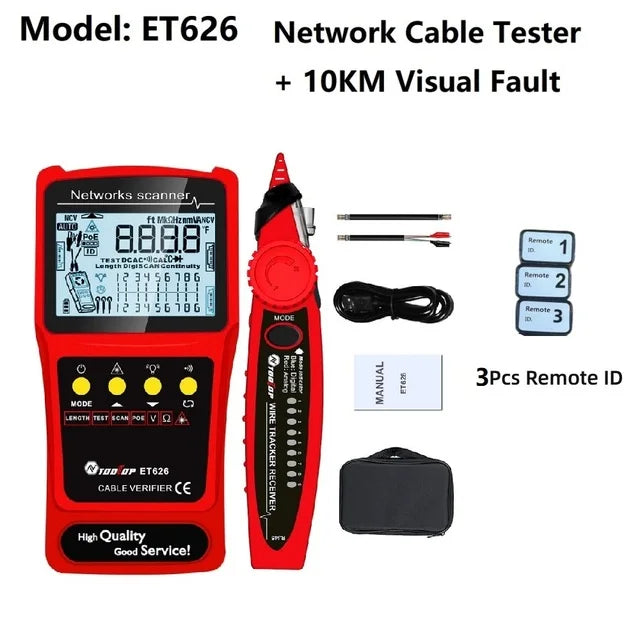 TOOLTOP 600M Length Measurement LAN Network Tester POE Test Noise-free Cable tracing Multimeter Visual Fault Locator 3 in 1