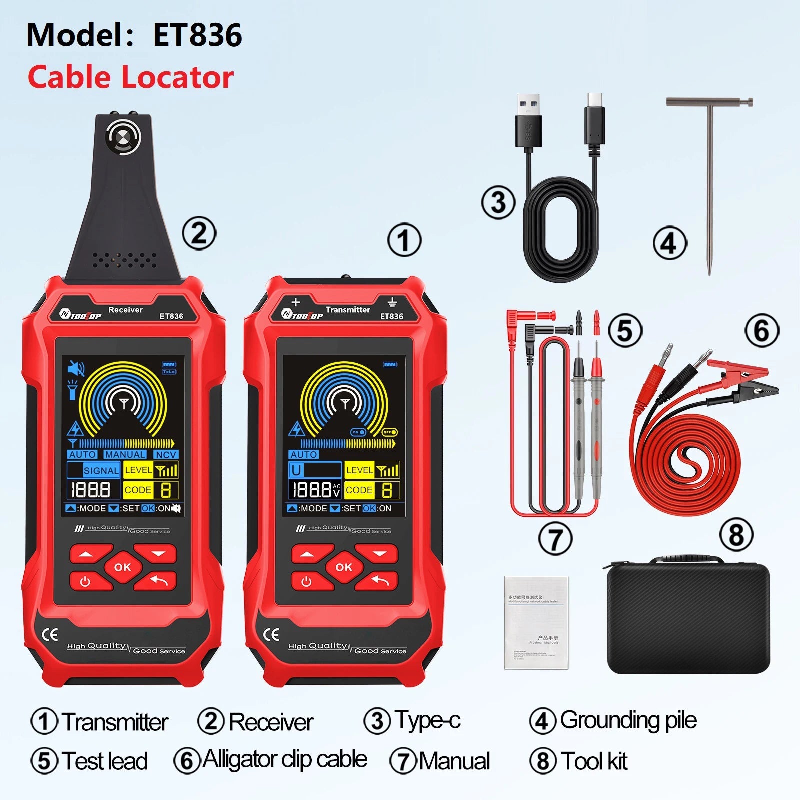 TOOLTOP Multifunctional Underground Electric Cable Locator 60000 Counts Multimeter Short Open Circuit Detect Metal Pipe Locator