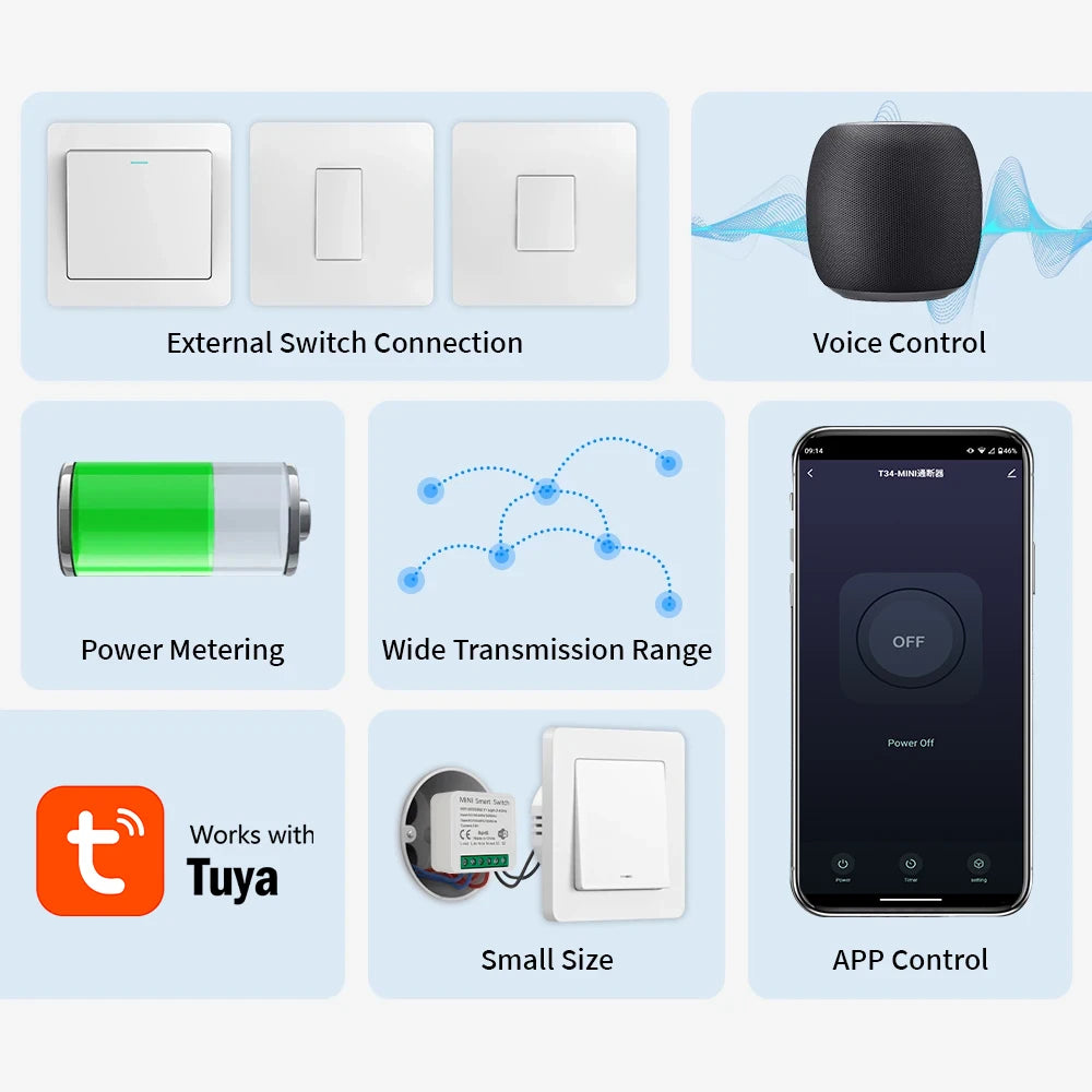 Tuya 16A MINI Wifi Switch DIY 1-way Remote Control Timer Relay Automation For Smart Life Work With Alexa Google Home