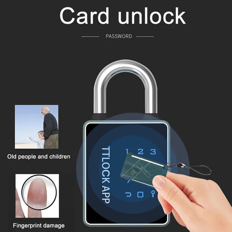 TUYA Smart Padlock TTlock Waterproof Fingerprint Unlocking Password Key 13.56khz RFID Card USB Charging Door Lock