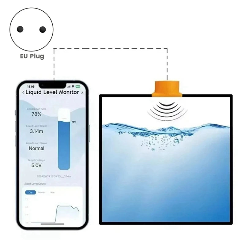 Tuya Smart Zigbee Ultrasonic Water Tank Level Monitor Sensor Real-Time Alerts App Control For IOS & Android EU Plug