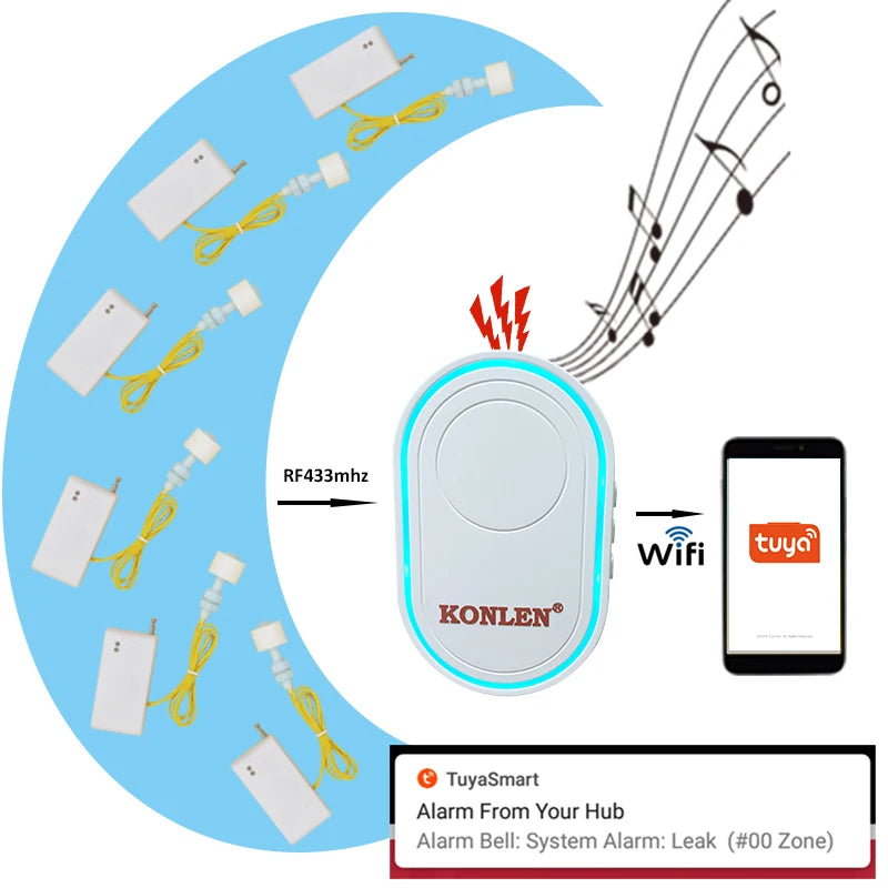 Tuya WIFI Leakage Sensor Water Leak Detector Liquid Level Siren Alarm Smart Life overflow flood Alert for bathroom tank kitchen