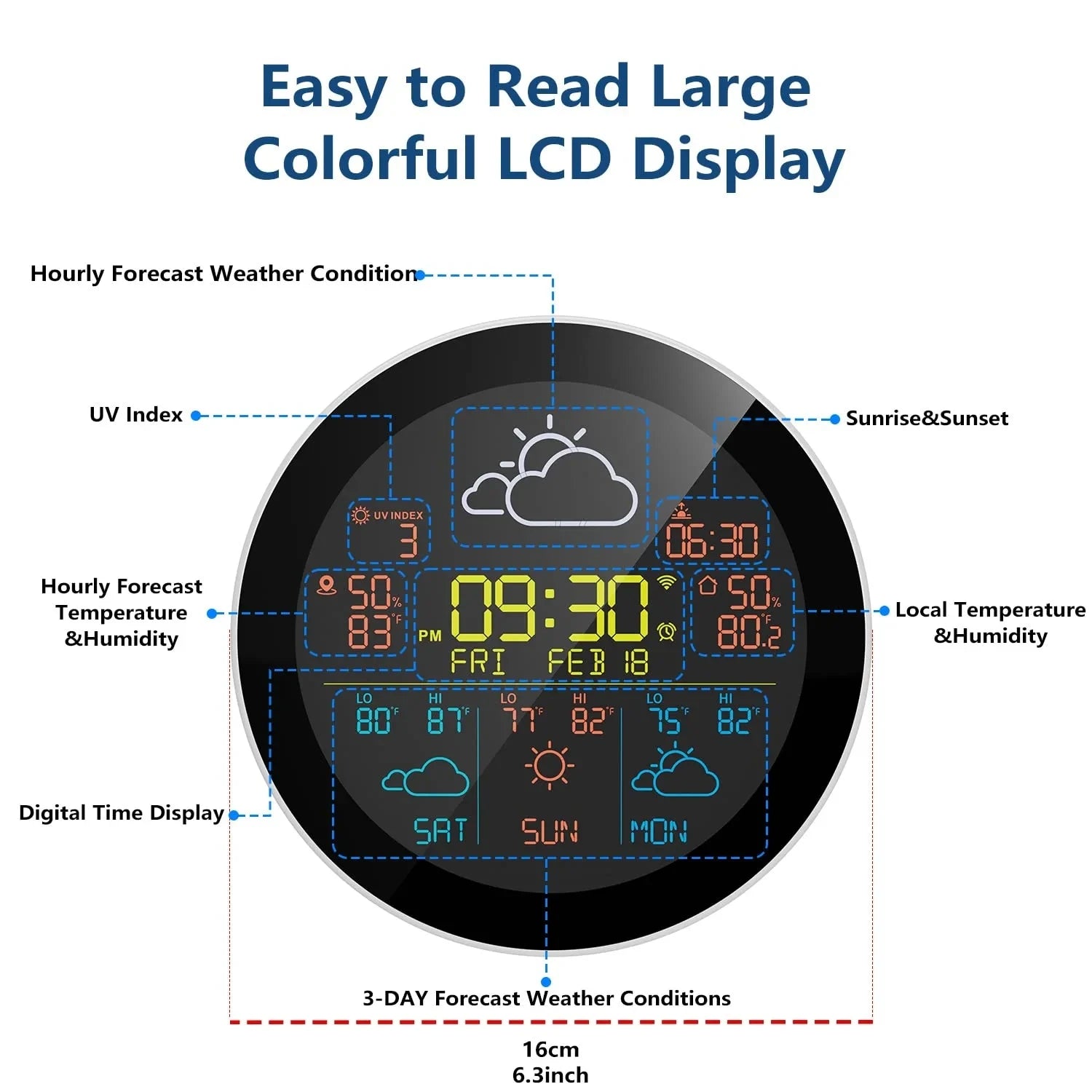 Tuya WiFi Weather Clock 3-Day Weather Forecast Weather Station Wireless Smart Thermometer Hygrometer Remote Gauge Alarm Clock