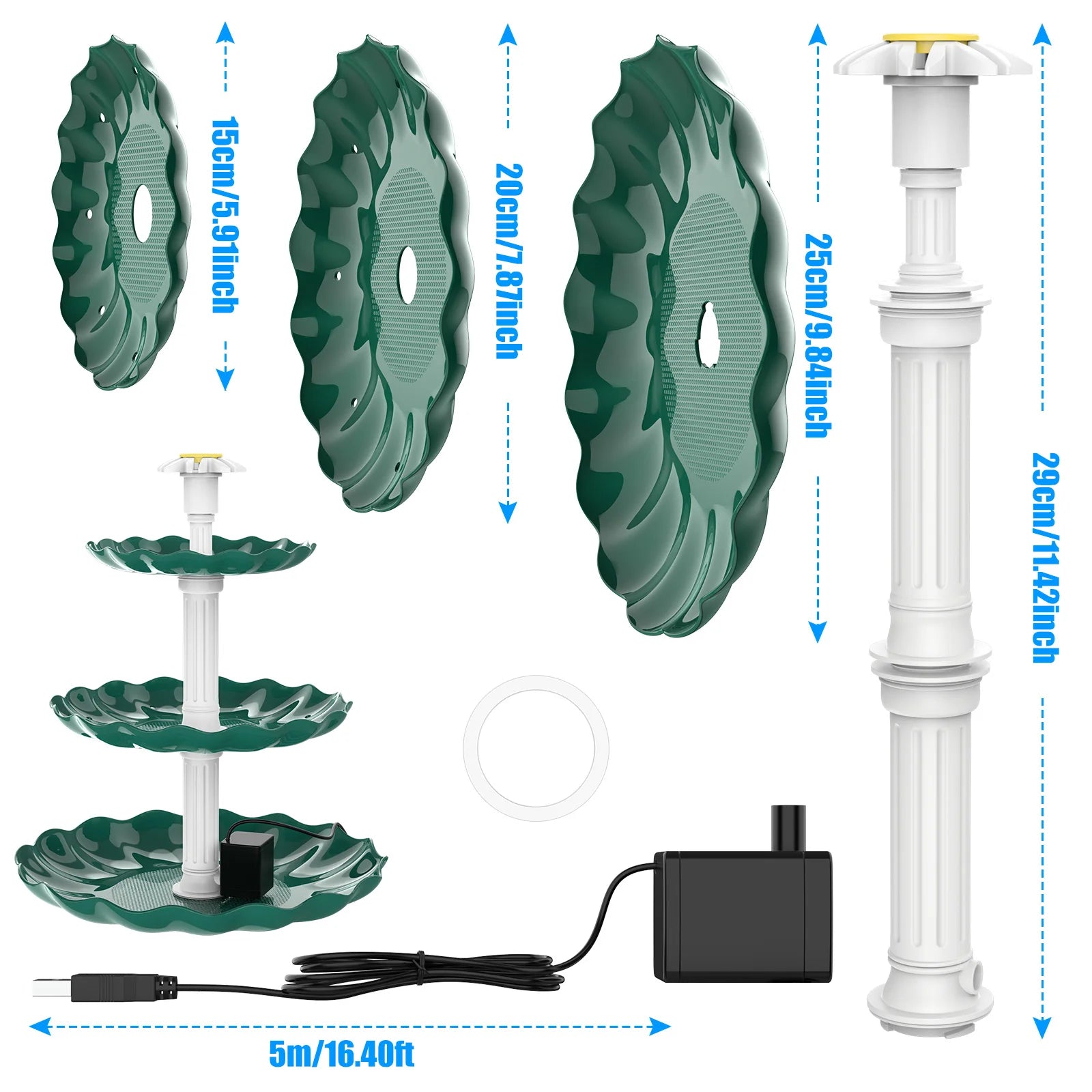 USB Water Pump Fountain Outdoor Wave Style Three-layer Flowing Bird Bath Fountain Pump Garden Pond DIY Decoration 24-hour Work