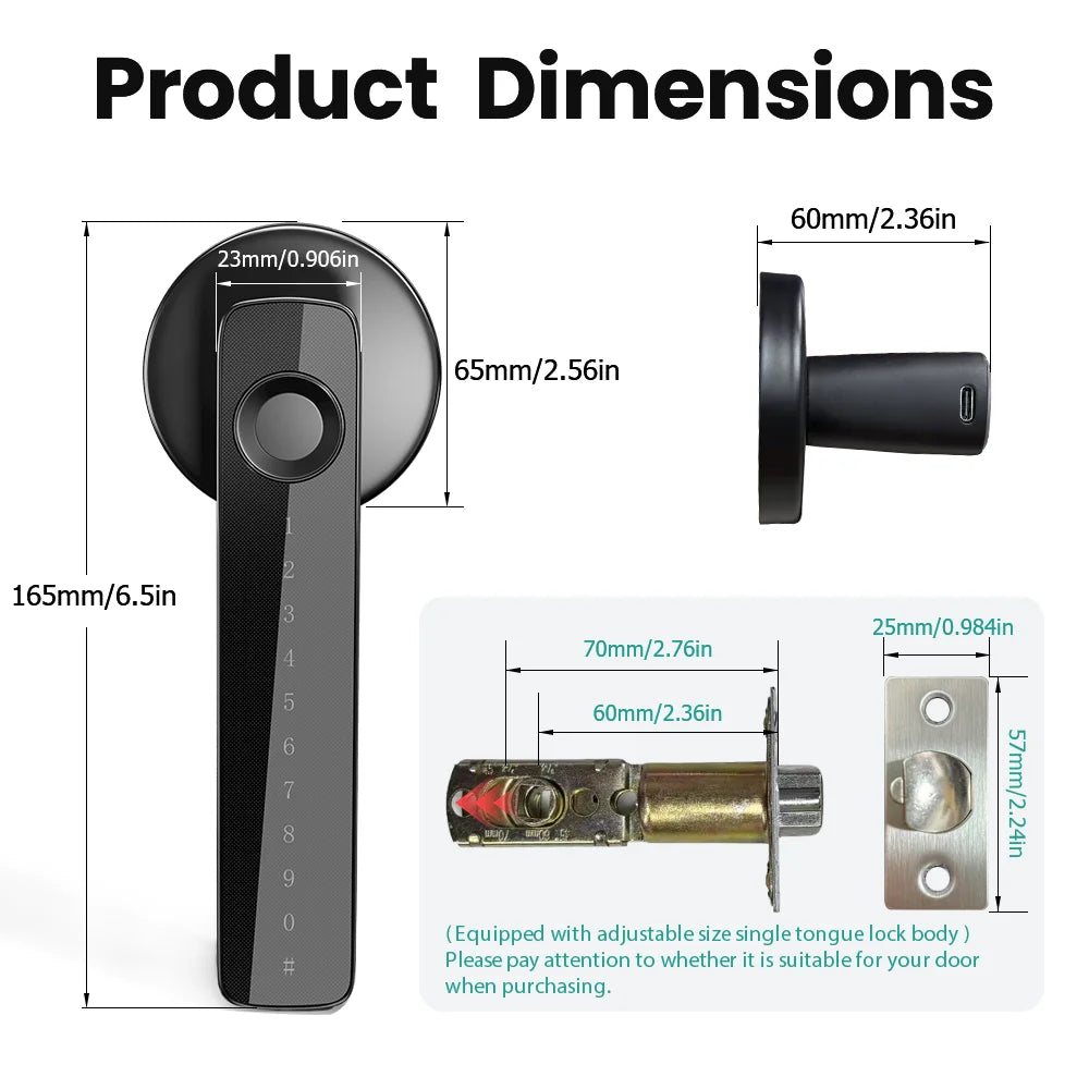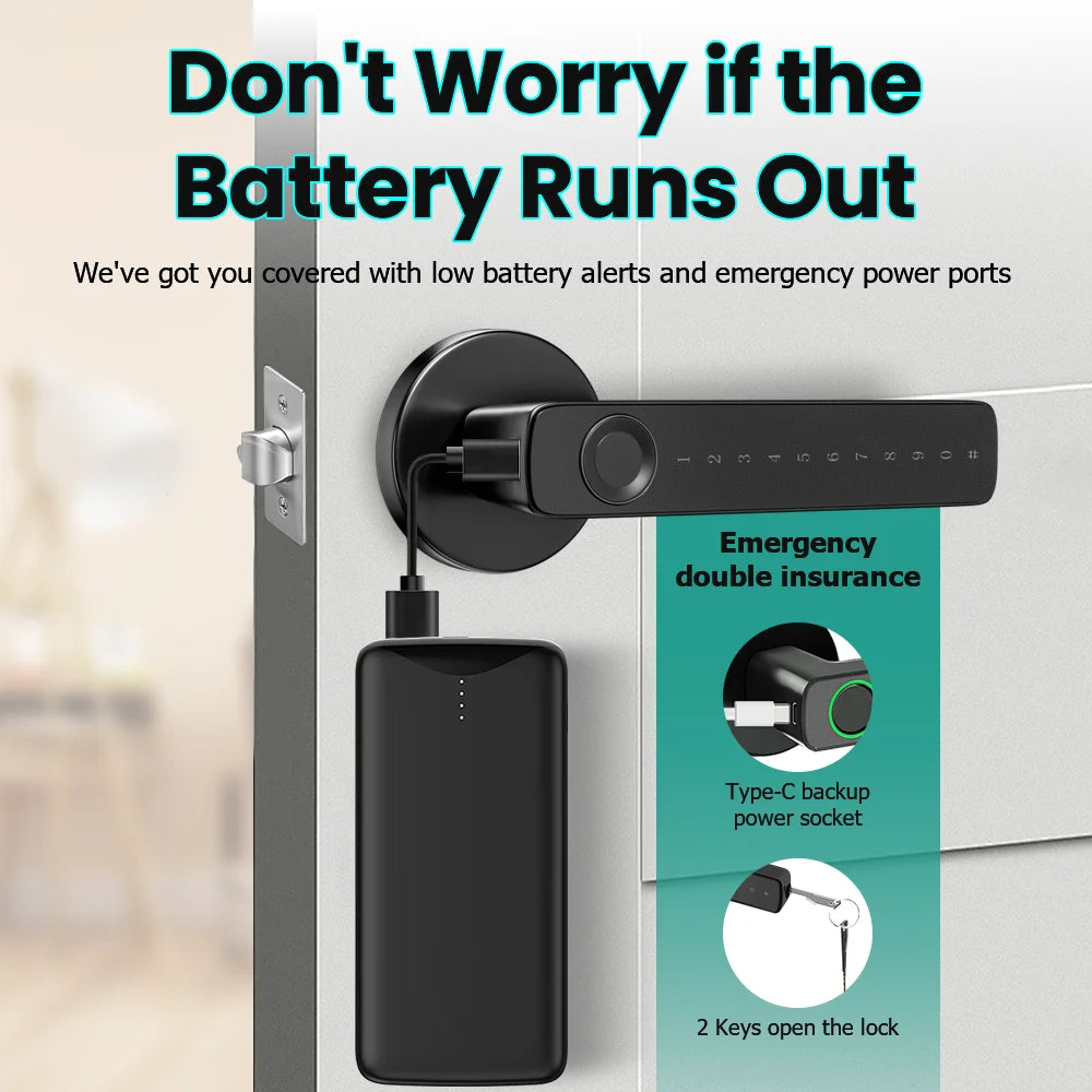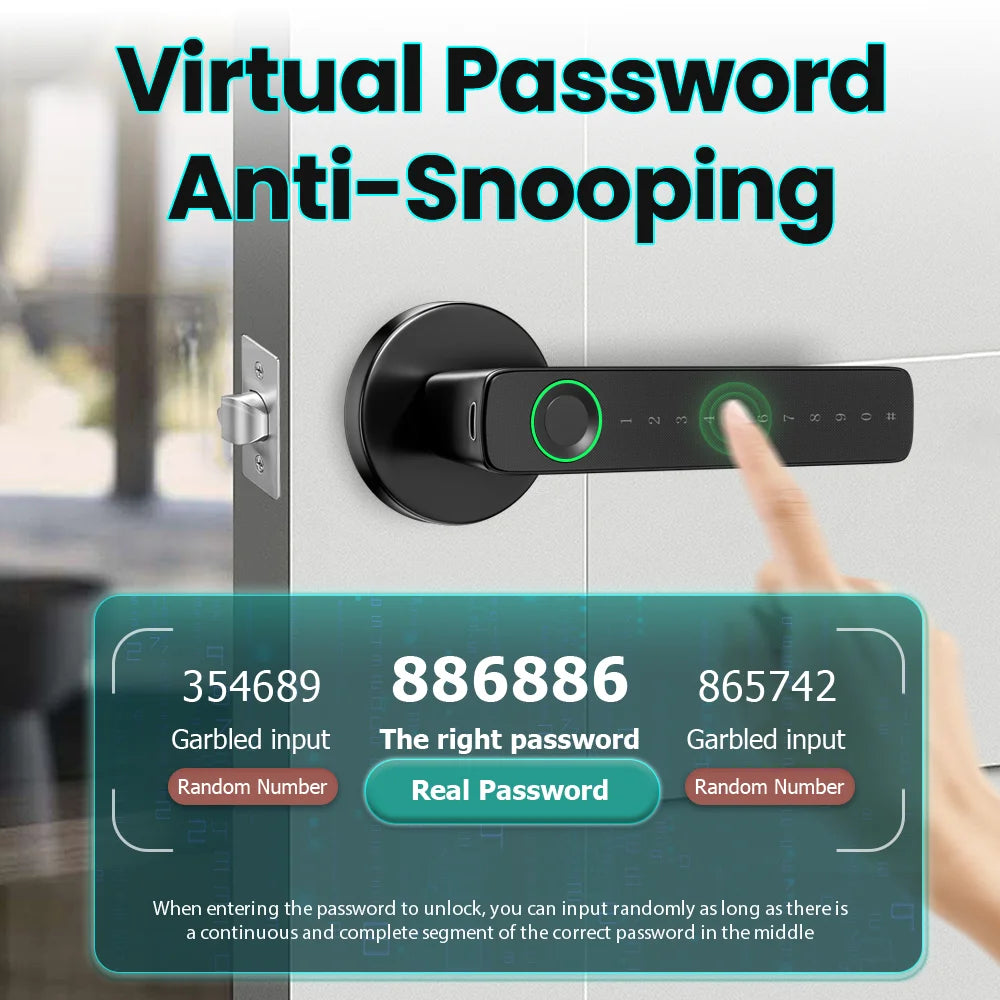 VBU Tuya BLE Fingerprint Door Lock Digital Electronic Lock with Password/Key/IC Card/Smart Life/Tuya APP Remote Unlock