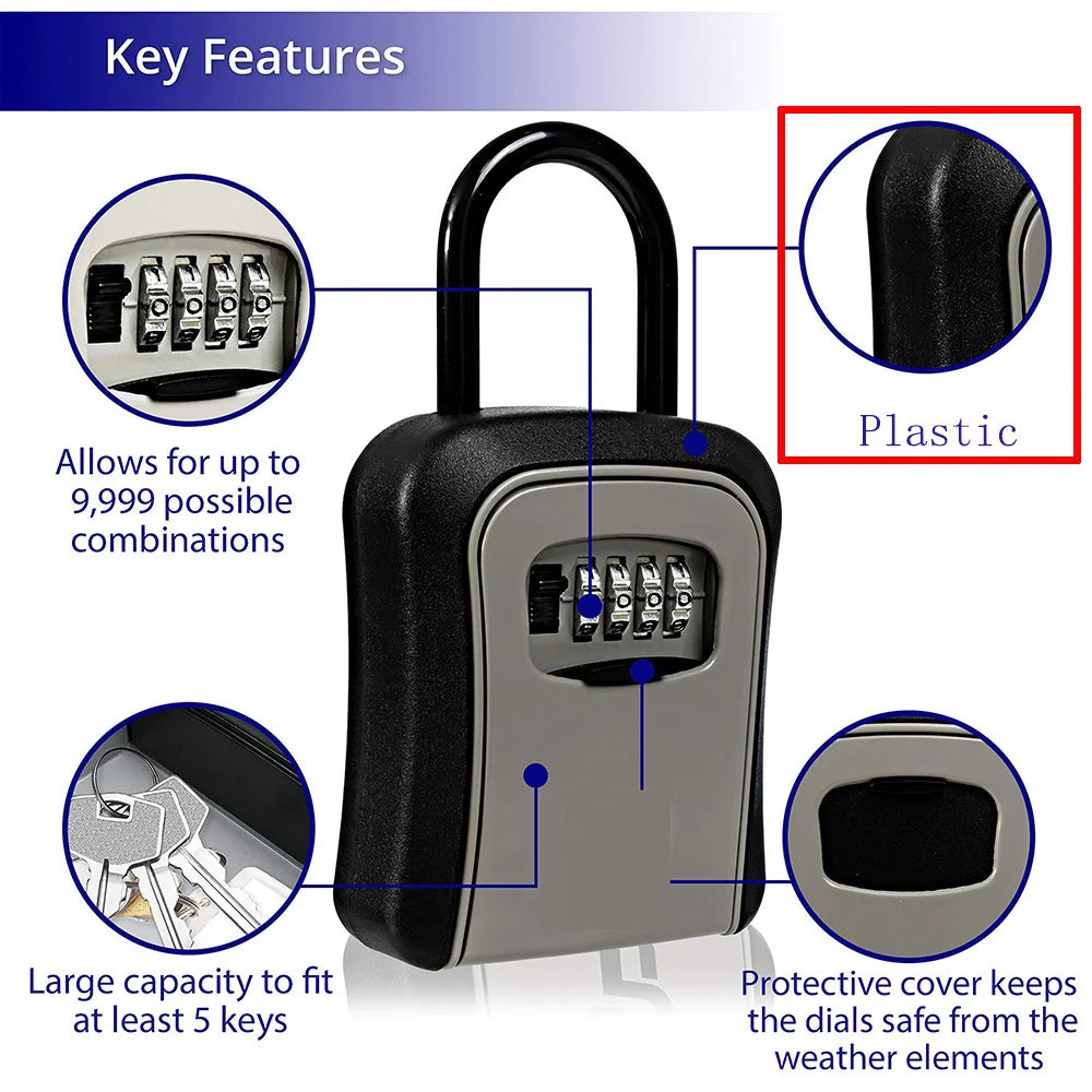 Wall Mount Key Lock Box with 4-Digit Combination, Resettable Code Outdoor Waterproof Lockbox for House Keys and Spare Keys